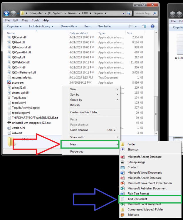 Hopefully this comes out the way I intend it to... First lets confirm something(s): 1) Locate the Tequila shortcut and right click on it 2) Click on the "Open file location" option 3) When the new window opens, scroll up until you get to the top of the list 4) Now take a look at the list of folders in the window, ignore the ones I've labeled, and any remaining folders SHOULD be your user folder / Global Name (you may have more than one if you have several accounts like me) 5) Leave that folder in the background for now and go back to the forums 6) At the top of the forums you need to click the "Account Center" category and choose "Game Account" 7) This will open the page where you can both Confirm your Game Account User Name as well as letting you change the password (go ahead and do that while you're here, even if it's the same as what you think it was). Note: You must be logged into the Forum account from which this was originally created. Further trouble with this should be directed to the Devs in the form of a support ticket to assist identifying what your info really is. 8) Now, to Verify that what you have been putting for your login before matches what it actually Has been, then this last picture (right above) should match the name of the folder you found in Step 4 above. If NOT, then that's the problem (unless that's what you've been putting in for some reason) and you'll need to make a ticket to sort it out. Lazy Login Trick: So assuming that you don't need to do a ticket or you've already sorted the Game Account's User Name out, then here's a neat trick to avoid things like "wait, did I fat finger that?" or "was that capitol?". Also, this assumes that you don't have more than one person who plays on the computer or you don't have another account (because then you'll have to blank out the login at the splash screen every time). 1) Bring that Tequila folder back, the one from Step 4. Right Click next to a file (not a folder!) and select "New -> Text Document" 2) Label the document "resume_info" and open the file to edt. Note: the full filename should read "resume_info.txt" as shown (no quotes!) 3) Ok, so the Game Account User Name we identified should go on the first line. Press the Enter key to go to the next line and type the password you set it to above. Save and close the file. You can close anything else you don't need at this point as well. 4) Now, whenever you launch the game it will AUTOFILL the login info for you so that all you've got to do is click the login button (Hitting Enter works I think...maybe).