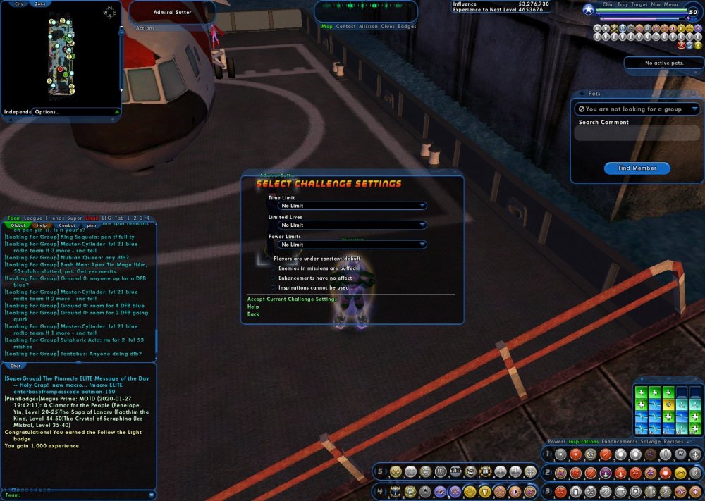 While on a TF, UNLESS it's the first time your toon has run it, I'd like to see an end to the "call contact... ask about available missions, and then selecting it" I mean, C'mon! It's a TF! You can't choose any different mission than the next one... why do I have to CLICK on it to choose it? True, there's the story line and dialogue that ONLY the leader can see and read, BUT if it's the umpteenth time you've run it why do you have to do it? It should be readily available and waypointed as you finish the prior mission... 'specially if you've already done it once on that toon! Maybe an option at the begining to op out of the extra 2 clix to continue?