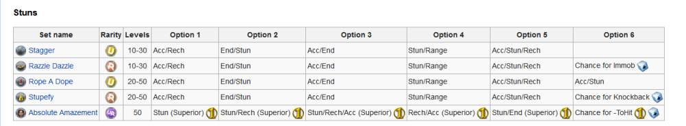 Eh. There's a case to be made for them - for more sets, that is, as a lot of the less populated categories are very much copy/pastes of the same setup. For instance, stuns: Other than the proc? They're the exact same (obviously can't see set bonuses here.) (Also ignoring the purple, but it's still not *that* different.) If I want non-proc damage in an attack that does a stun, I'd have to frankenslot. Of course, creating a set with "Damage/stun" is - like hamis - not going to *add* damage to a power that doesn't *do* damage. For that, yes, you'd need a proc. But a bit more variety in some of the set families wouldn't be bad.