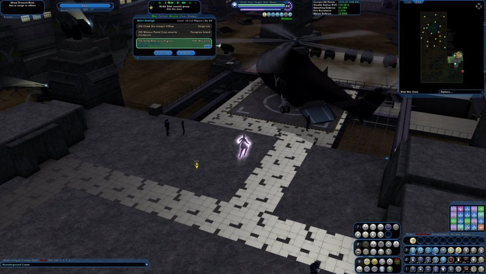 Rikti War Zone Contact - Levantra Mission - Strike Rikti assault group. I had this mission prior to the page drop. Decided to go ahead and get it out of the way. The mission indicator is right where it used to be - on top of the exit into the RWZ from the Vanguard bunker. Where the helicopter... was. Going to the helicopter and clicking the guard - "You cannot enter." Going to the door in the bunker - "You cannot enter." I'll likely have to abandon and retake the mission - no big deal... if you're aware of it. Reporting it anyway.