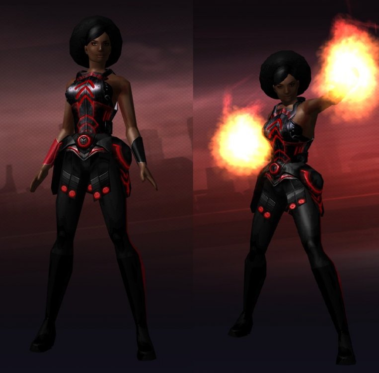 Was fooling around with a new costume for a character and came across a costume option I had never really felt a need to use, the Resistance Armor under Chest Detail. Decided the armor was not right for the character, so made a new controller and recycled the name of my go at a Fire/Dark blaster who did not turn out as I had hoped. So this is the all new Ebonblaze: