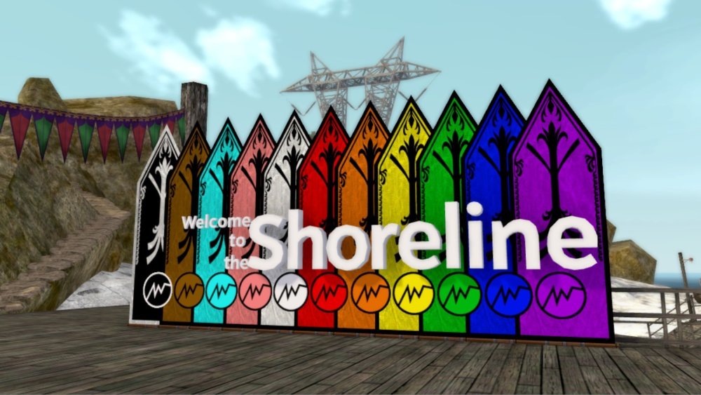 Hi, this is my very first post apparently! I'm here to share a base that I made. It came to be due to a roleplay scene between my char and a friend and our SG. I hope to host events here soon-ish, although I am currently taking University classes so, I need more time to plan! This island was terraformed from the ground up by a certain mutant rebel, helping him to express himself with color, sound, mutant tech and a second home right at the Shoreline. You can find the open venue on Everlasting SGB-32878
