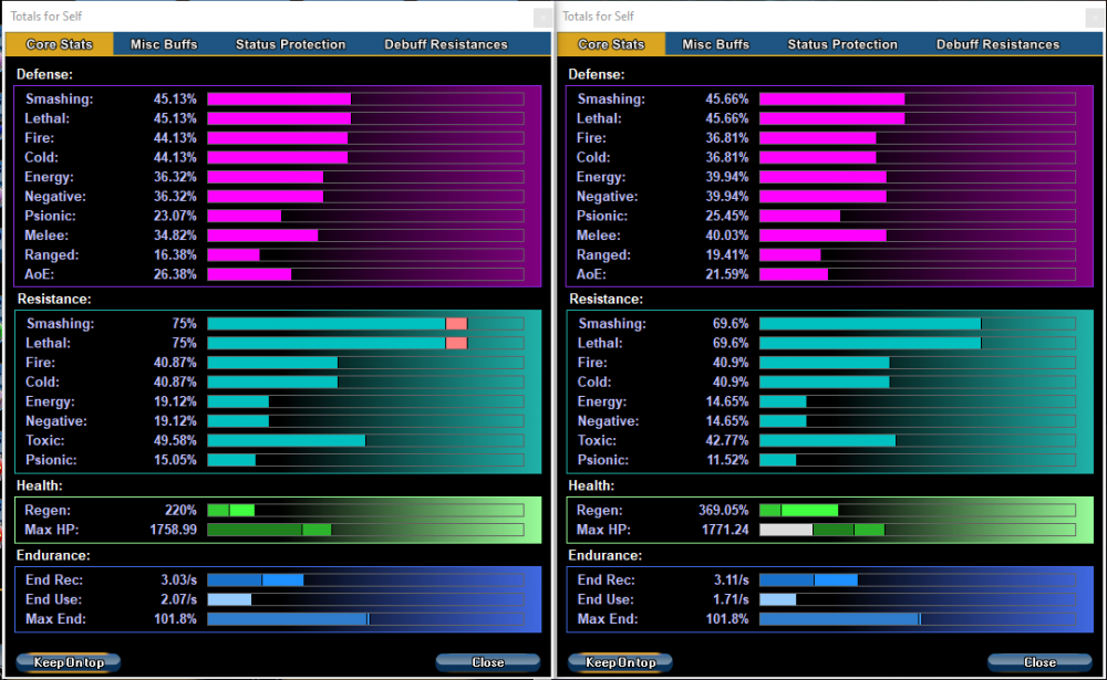 Ok so, I'm making this post to give back to the community "Paying for Forward". This community has been extremely good to me and I'm just trying to pass on the love. It's 2022 and if you're wondering if TW/BIO is still strong af then the answer is 100% yes (don't worry about the 2020 nerf, this class still rocks). I'm going to add different Builds in the comments, each build is slightly different and I do not take credit for any of them. There's a high probability that I will mess up on giving credit to the rightful original build owner (sorry), but the goal is to share the knowledge regardless. Furthermore if you have a build that works well for you, please post it in the comments, and if you don't mind, please use the format that I'm using to post the builds so people can see the results without loading it up in Mids. If you are a noob like me and you don't know how to use Mids, then start here to download Mids: (If you're intimated by mids like I was, don't worry, it's actually really fun and totally worth the time-dive). Here is a comparison of each build's Defenses and Offensives: See comments for each build's details: For Google Keywords Search Results: City of Heros TW/BIO Scrapper Build City of Heros Titan Weapon / Bio Armor Scrapper Build City of Heros Titan Weapon/Bio Armor Scrapper Build City of Heros Titan/Bio Scrapper Build COH TW/BIO Scrapper Build