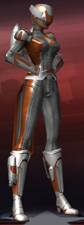 3. With the servers being down, I decided to go back into Champions Online and remind myself of the costume editor there. I really appreciate the greater number of options and materials, but no matter what I do, the characters' faces always look "plasticy" or toy-like. While CoX's models aren't perfect by any means, they definitely look more realistic, IMO... Here's an example, (I will say this much - I greatly appreciate the green-screen room in the tailor, there):