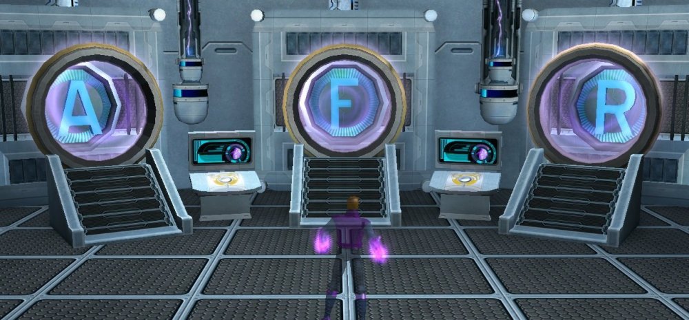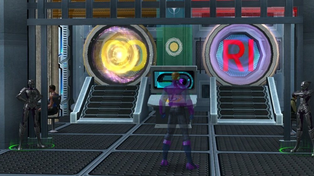 I've made a Dirigible Steamship as a base for my steampunk-related supergoup, Steamsters Union. I'm hoping to be able to get people to join, assuming they like this sort of thing. If you're interested, send me an in-game email "@Scarlett Scarab". I'm on most days between 8:30-1:00 pm (PDT). On Everlasting: STEAM-21178 My character's backstory is that he's from an alternate earth, where steam-related technology really took off. He and his band of adventurers were trapped by Nemesis to build weaponry for his army. They escaped, but now they're cut off from their original dimension. You really need a flying toon to be able to appreciate it properly... Here's the bridge, with a captain, a navigation map, and everything... Of course, every ship needs a big gun! Here's the main entry, on the science deck... ... complete with portal to extra-dimensional locations (Pocket D, Shadow Shard, Night Ward, etc)... ... and an invention station, enhancement lockers, and salvage lockers. There's even a quartermaster and Icon tailor to help you outfit your heroes. And when you need to travel to other areas of Paragon City or the Rogue Isles, just take a Longbow Jumpjet on the flight deck.