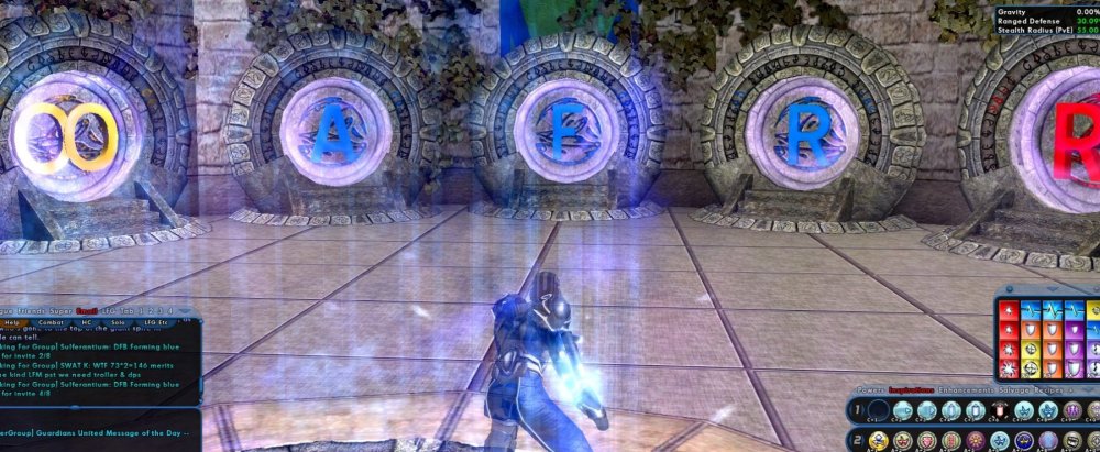 Sheesh. After seeing Infernal Jester's sweet digs, I feel embarrassed posting my efforts in creating the Paragon Air Ship: Minerva. Oh well P.A.S. Minerva Indomitable Server: MINERVA-4704 Featuring: Aleph Deck (Main Deck): Teleporters to Paragon City, Alternate Dimensions Transports to Pocket D, The Rogue Isles (if you're a villain), and Kallisti Wharf Flight Deck A small Med Bay Mission Command Headquarters Salvage Storage Invention Salvage Storage and Lab Inspiration Storage Beth Deck Enhancement Storage (up the stairs from the Invention Salvage Storage) Mission Command HQ 2nd floor Main Gun Deck Firing Range Gimel Deck Brig and Internal Investigation Office Training/Meeting Center Daleth Deck Residences (6 meager Hero Dorms) Residential Kitchen Recreational area Heth Deck Gym Arcane Garden Kaph Deck Ship Bridge/Command Center This is the PAS Minerva Here's a closer view of the gun deck and main Tower Use the shuttle if you have business in the Rogue Isles Here's a shot of the diligent workers in the Salvage Storage section The Mission Command HQ Invention Lab Paragon City Teleporters Med Bay Main Lobby Heroic Habitat Bridge Deck Internal Investigations Office (near the Brig)