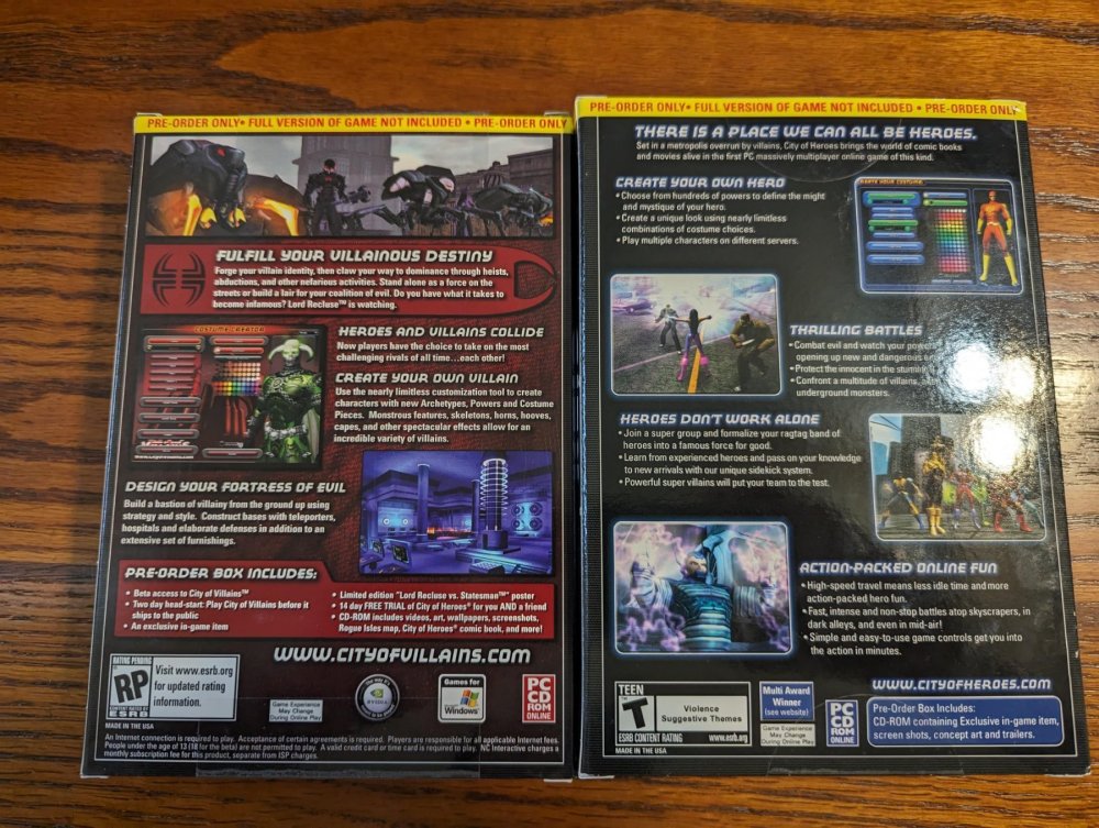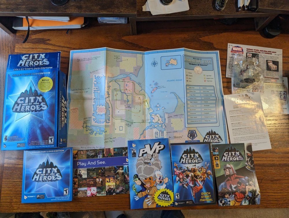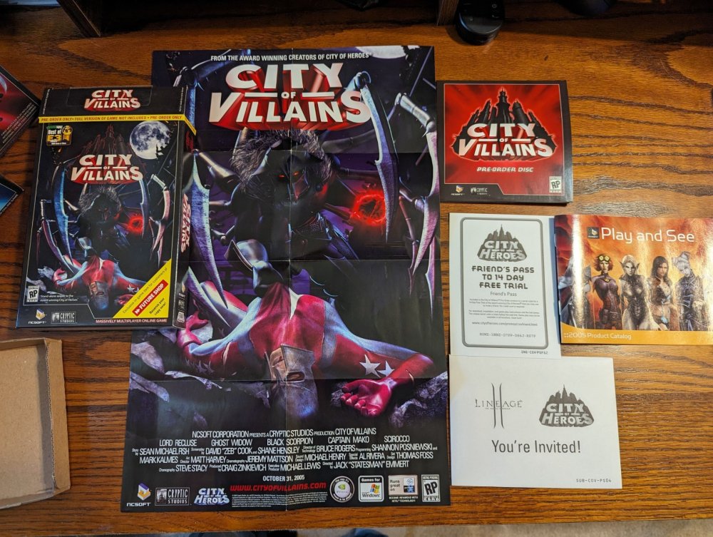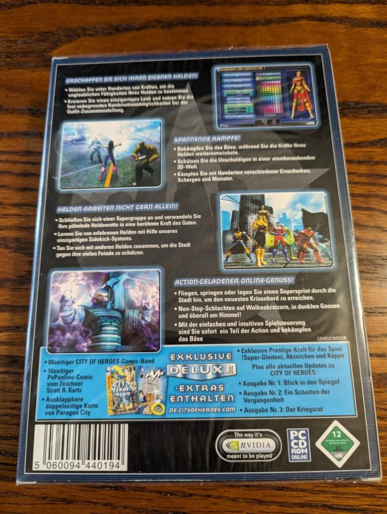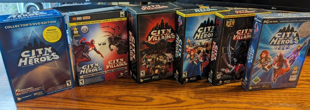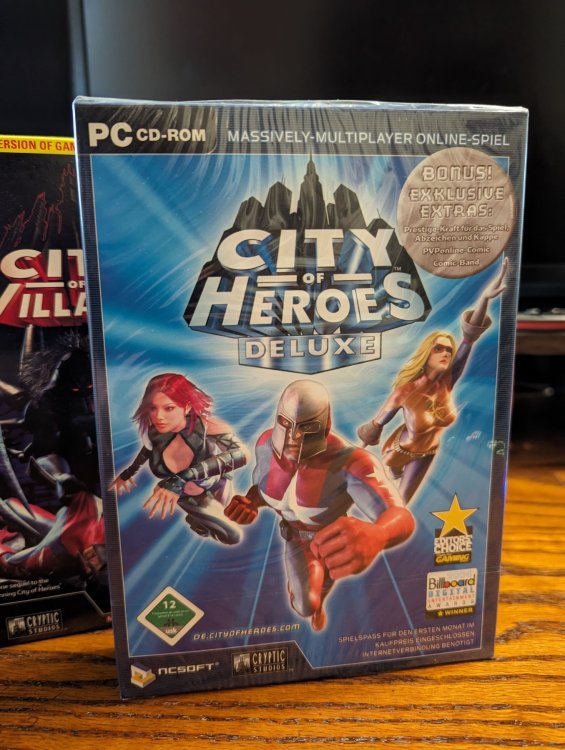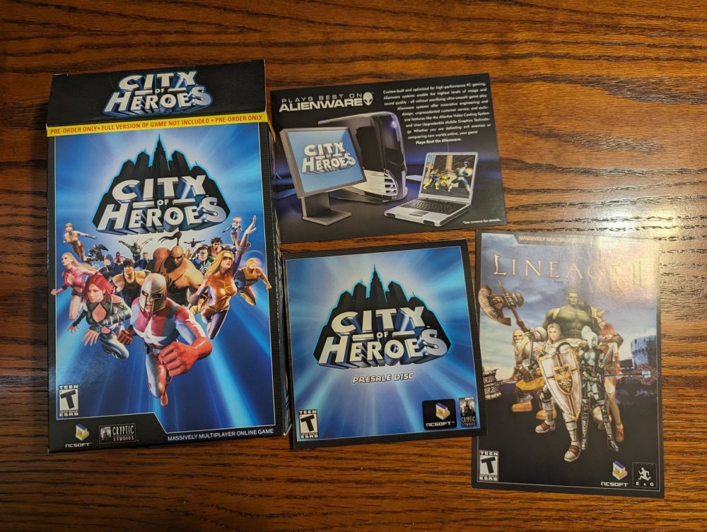Hey everyone! I wanted to share an awesome gift I received recently, and what better occasion than the 20th Anniversary of City of Heroes! I work in games QA and one of my coworkers actually used to work in QA for NCSoft back in the day. I'm not gonna share any names, but they did work primarily on City of Heroes from launch to a few years after it moved to Paragon Studios. Just to address the elephant in the room with that - no, I'm not going to share any info about anything regarding their work during that time as there may be some NDA agreements floating around. So I'll leave it at that. However, they did send me an amazing package recently of a bunch of near mint retail boxes of the game! Apparently, NCSoft gave out a ton of these to employees, so my coworker has even more stuff that I don't know about. I'll share a few images of the most interesting parts: The lineup above ^ : City of Heroes Collector's DVD Edition, Good Versus Evil Edition, City of Villains Collector's Edition (nothing in it, unfortunately), City of Heroes and City of Villains PRE-ORDER editions, and the German City of Heroes Deluxe edition (essentially the same as the DVD Collector's edition without the Hero Clix figure) ^ Here's what's inside the Collector's DVD Edition. The comic promo is just a pamphlet, not the full issue. Also, if you can't tell, the Hero Clix figure is Statesman. ^ German "Deluxe" edition. I'm gonna keep it sealed for now, but if anyone wants to see what's inside, I could be convinced to open it. ^ These were pretty interesting to me - I didn't know there was a box retail for the pre-order of the game. Also, fun fact: Lineage II released a day before City of Heroes. (April 27th, 2004) Anyways, I hope you guys found this interesting at least. You can find more info on the retail releases here: https://homecoming.wiki/wiki/Disc_Releases