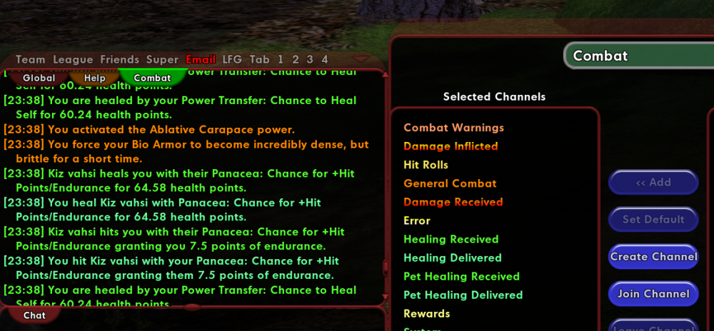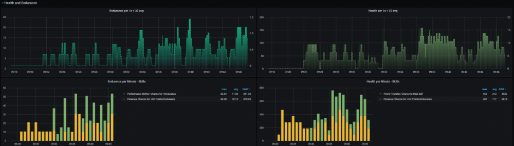 22. I went ahead and added Healing/Endurance sources effecting the player. '%{TIMESTAMP_ISO8601:timestamp:ts-"2006-01-02 15:04:05"} %{GREEDYDATA} hits you with their %{GREEDYDATA:power_name:tag} granting you %{NUMBER:endurance:float} points of endurance.', '%{TIMESTAMP_ISO8601:timestamp:ts-"2006-01-02 15:04:05"} %{GREEDYDATA} heals you with their %{GREEDYDATA:power_name:tag} for %{NUMBER:health:float} health points.', '%{TIMESTAMP_ISO8601:timestamp:ts-"2006-01-02 15:04:05"} You are healed by your %{GREEDYDATA:power_name:tag} for %{NUMBER:health:float} health points.' I spent a decent amount of time trying to figure out the grok_pattern for XP/INF. Unfortunately since the default INT & FLOAT don't deal with thousands seperators AND influxdb can't convert from string to int I kinda gave up. Oh Well. I need to practice with Grafana anyways for a project at work. I might try to make the install process for this a bit less painful for people using windows using Docker Compose if there is interest. No Promises when that might actually happen if there is though, work keeps me far too busy lately...and honestly, getting XP/INF working would take higher priority for me. City of Heroes-1593337221623.json