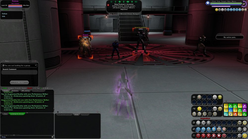 Buoyant Membrane is the temporary Group Fly power you can get in First Ward while fighting the Seed of Hamidon and the Seedlings. When I was knocking some Seedlings down to get the Full Spectrum badge, I noticed that while using Buoyant Membrane to fly around and fight them, my travel speed kept getting reduced every few seconds as if I was attacking something. At first I thought my Blaster's Absorb barrier ticking up was doing it (the slowdowns were in perfect sync with the combat log telling me I had Absorb), but when I turned that off I was still getting slowed down. I swapped to another character, same thing, this time theorizing that maybe it was something like Health/Stamina constantly reupping the proc. Switched to a third, completely unenhanced character and was still getting suppressed while Buoyant Membrane was active. At one point I took the power back to Atlas Park, thinking maybe First Ward's Debt Protection effect was doing it, but still nothing. I also checked my other flight powers (various jetpacks and Mystic Flight) and wasn't getting slowed unless Buoyant Membrane was also on. Something is making the power think you're constantly getting into a fight every few seconds, severely limiting the power's use during Seed takedowns and elsewhere but I can't figure out what might be doing it.