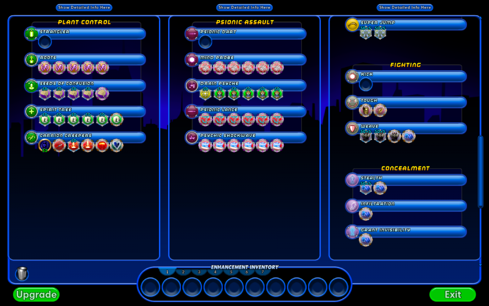 No mids so.. Here is a Plant/Psi meteor farm build (that still needs boosters 😕 ). 45% fire defense, 75% fire resistance, not good for a whole lot else. Sitting here spamming Spirit Tree. Sometimes I have 1, sometimes I have 2. And here is one of my trappers (thinking about respec'ing this... hard to get away from Sorcery on Controllers once you've tasted it!). Those are Heal/Rech D-Syncs.