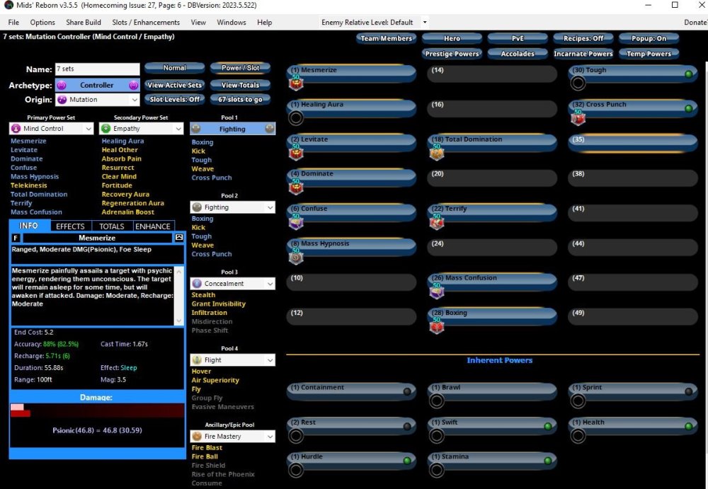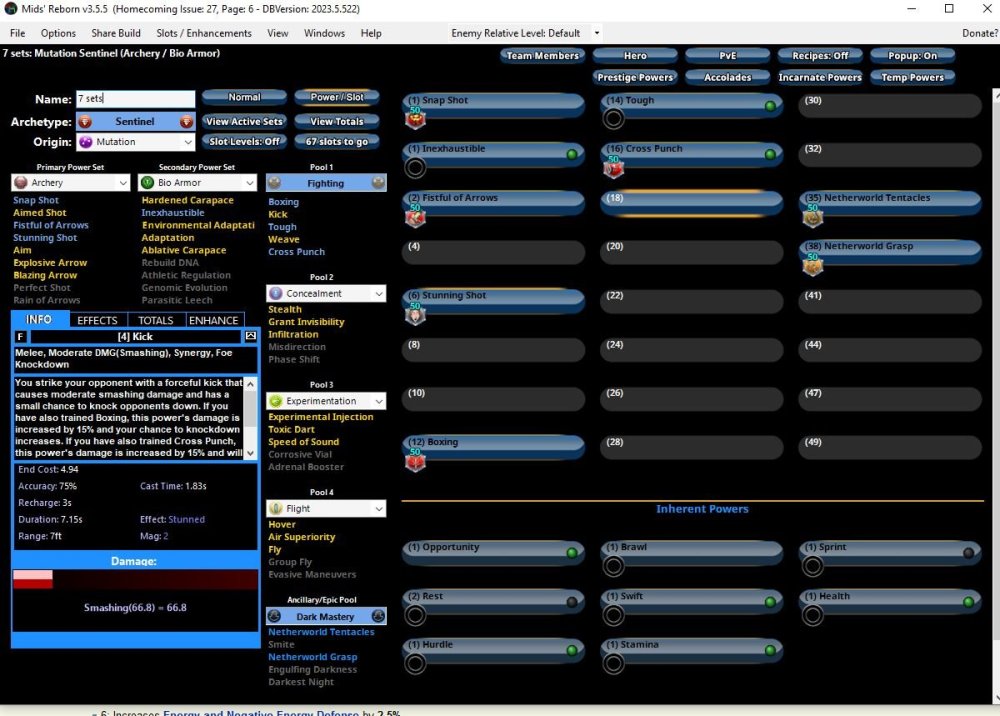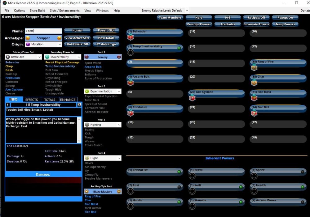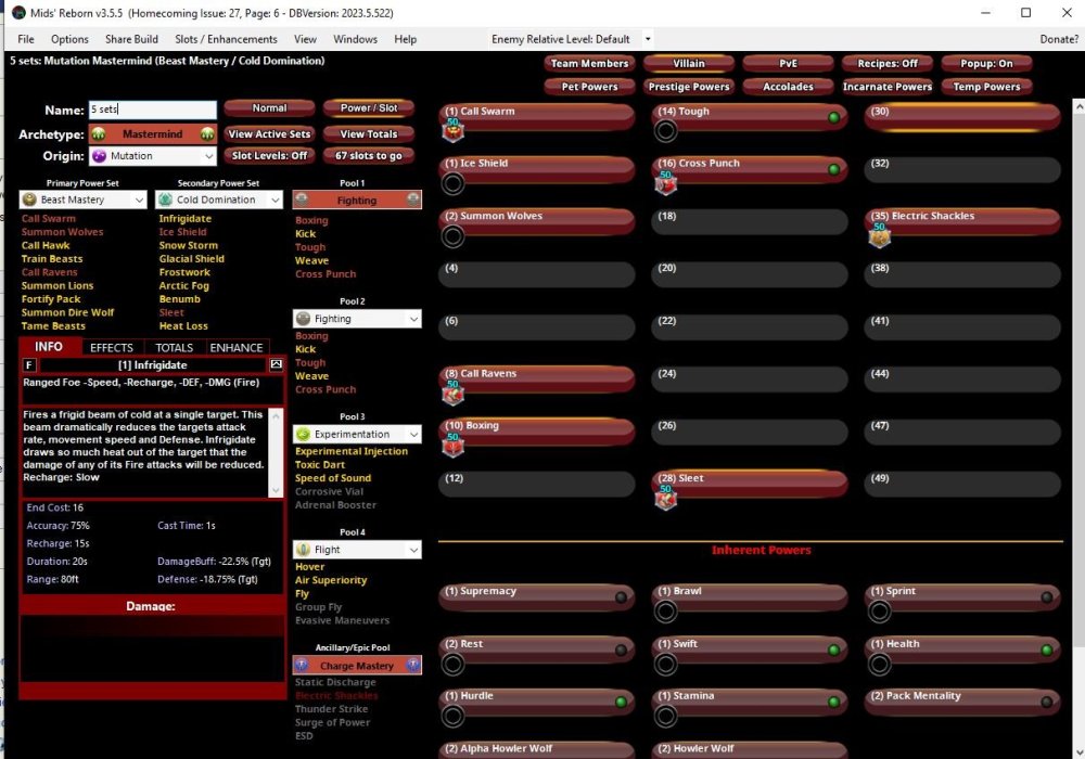 Purple IOs for Heal, Resist Damage, Defense Sets, ...Rudra replied to Papias's topic in Suggestions & Feedback For the sake of fairness, I opened up Mids to see if I could make a character that couldn't get 5 purple sets slotted. I first tried a Mind Control/Empathy Controller because I figured that would be the most likely. Except it could slot 7 different sets. So I tried a Battle Axe/Invulnerability Scrapper, and it could slot 6 sets. So I tried an Archery/Bio Armor Sentinel that only had Inexhaustible from the secondary, and it could also slot 7 sets. Finally I tried a Beast/Cold Mastermind, and I finally found one that could only slot 4, provided I took Field Mastery as my APP. Otherwise it also got up to 5. To be fair, all of them had the Fighting pool as a pool pick. I also avoided Soulbound Allegiance even if it was an option and avoided ATOs.