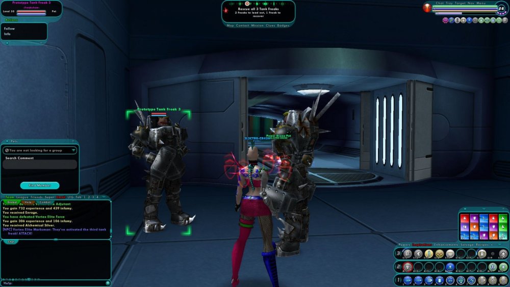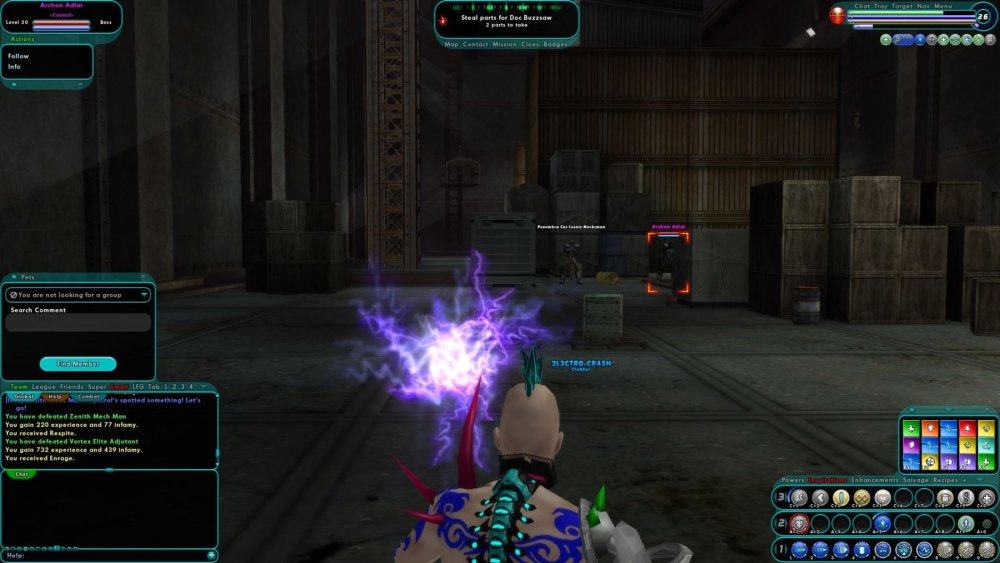I'm working my way through Doc Buzzsaw's mission arcs right now, and I ran into something I don't think I've ever seen before. In the mission "Steal robotic tech for Doc Buzzsaw", part of the Heavy Metal Doctoring arc, Archon Adlai has for some reason spawned at level 30 - despite everyone else in the mission being either level 26 or 27. I'm running it at +0/x0, and I can't see anything online indicating that Adlai has either a set level adjustment or a set level. This wasn't just a visual glitch, either: while I was able to defeat him (yay Endurance drain!!!), he definitely seemed much harder than bosses of my level - I missed more often, he hit for higher damage, etc. This image shows off the level of the boss and the fact that the minion that spawned with him is white to me (i.e. level 26). EDIT: Sooo, "Recover the 3 Tank Freaks", the next mission in the arc, just so happens to have a level 30 ally. Again, this is a +0/x0 mission, where everything else was of the appropriate level. This image shows off the random level 30 ally. The ally beside him is level 26.
