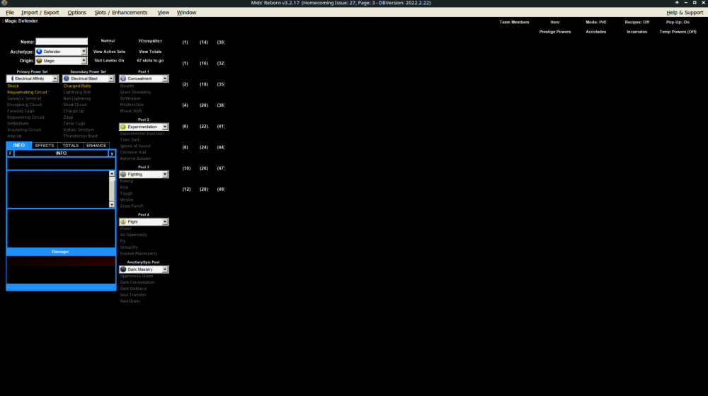 Hello all, I'm running Linux and am having trouble getting Mid's to work. It's a work in progress, so I was just wondering if anyone had an inv/dm tank build that's HM ITF worthy that they are willing to share. For this toon, I don't care at all to do damage. Pure tanking and keeping aggro is the goal. Since Mid's isn't working for me currently, attached are the screenshots of the current setup. Tyvm in advance for any help.