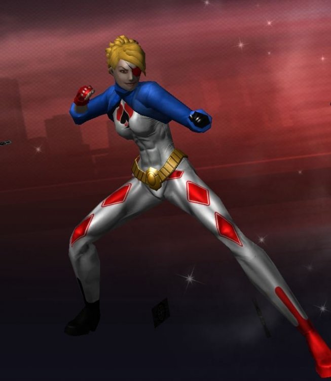 I also have a card-themed character, Jaq of Cards, who has a costume that is definitely inspired by Dazzler. Though she has other outfits inspired also by the Royal Flush Gang and Jack of Hearts.