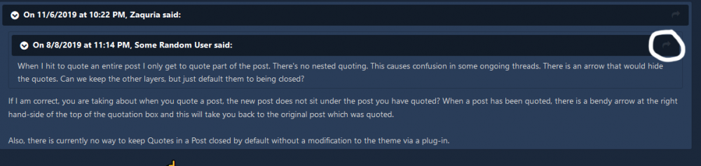But there is no need to nest quotes like the way you have. It just clutters up posts. If I want to follow a quoted post in a topic, I can just click on the little arrow to the right and go back to the original quoted post. -