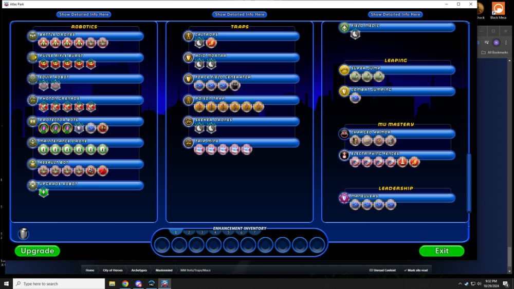 You dont need triage beacon, caltrops procs probably better elsewhere, there is literally zero reason to take fighting pool on bots/traps you should be close to the softcap with proper slotting just from FFgen, maneuvers, hover/CJ, and pbot bubble. Dont take maneuvers that early, take poison trap as soon as its available and 5 slot it with gravitational anchor, Consider replacing fighting pool and triage beacon with aid pool for heal other and field medic (you will get way more mileage out of healbot+aid pool) and take photon grenade. You need to understand,..,poison trap is -1000% Regen. Base. Just like no enhancements involved. With two bots attacks you can drop AVs and Giant Monsters down to 0% regen. And solo them. Seekers to take alpha, poison trap to hold mobs, acid mortar, caltrops, and the bots should have opened up in defensive mode by then. You can wreck some pretty high level content if you build it right