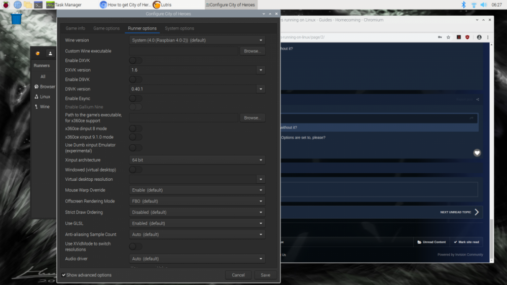 Yeah saw the site go down and while I did wait a while to send another response I was just too tired to continue :D . I tried a few other things through Lutris. I had Wizardry 8 copied onto the pi (i had forgotten it was a windows not dos title) and it would give me the same error. I also had lutris log into my GoG account but it wouldn't download the titles I selected. I found you could download different wines through lutris so I grabbed version 5.4 and did get a different error message but ultimately nothing I tried worked.