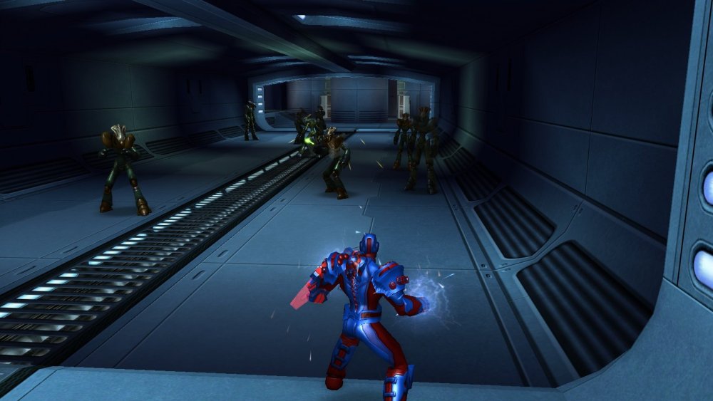 No, I'm not asking for a massive overhaul of the Rikti. Just some of them. I feel like the Rikti Guardians and Rikti Communications Officers don't stand out enough. You wind up with a sea of pea green and pumpkin orange, topped with protoceratops heads. However, there are some Rikti uniforms that are criminally underused. They only show up in a couple arcs, but they'd be amazing to help diversify the rank-and-file Rikti. One's an orange uniform, practically all-orange. That'd be great for the Guardians. It would highlight their utility in a fight. The other is a forest green uniform with purple shoulder pads and highlights. That would be simply stunning for the Communications Officer, as its resplendent appearance would signify the enemy NPC as a character of rank and responsibility.