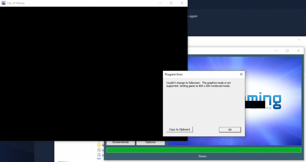 Based on my flow I think the issue was originally a very out of date video driver in conjunction with the latest update. Setting Computer\HKEY_CURRENT_USER\Software\Cryptic\CoH\screenx to 800 and Computer\HKEY_CURRENT_USER\Software\Cryptic\CoH\screeny to 0 in the registry forced the client to reset the video settings to default, which fixed the issue. -