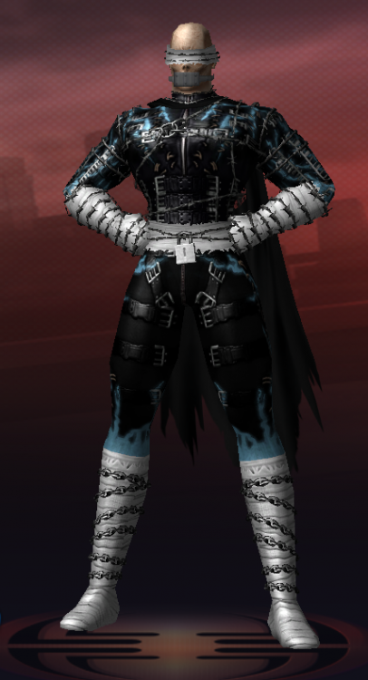 Well, here is my recreated edgelord character and first CoV build - Suffercharge. Electrical Melee/Willpower Brute. Suffercharge was a prototype super soldier created by an unknown group who planned on mass-producing loyal, emotionless clones for profit. Part of the design brief was to make them immune to pain, which they succeeded on to some degree. His nervous system exists, but is essentially separate to the rest of his body. His creators found that his body was numb, registering pressure and heat only vaguely. Pain, however, caused electrical impulses to be generated by the appropriate nerves. But, rather than heading to his brain, the energy simply circulated endlessly through this sub-dermal network of nerves. He was able to use this power source to heal his injuries by focusing the energy into the wounded area to speed cell regeneration, as well as discharge it through touch. As the energy was the 'frequency' of human pain signals, this resulted in his target becoming crippled by waves of agony. Delighted by this turn of events, Suffercharge's captors ran him ragged through brutal, seemingly pointless tests to determine the limits of his abilities. He was exposed to all kinds of painful stimuli and then thrown into combat against street thugs, mercenaries, etc. He would be told to let them beat him for as long as he could remain standing, then kill them without mercy. His body was augmented by crude cybernetics designed to run off his internal power supply, and he was often awake for the surgeries. Even his name was a mockery, as the project to discover a way to replicate his abilities in all the following closed was called Operation Supercharge. Since his creators wanted to see how much he could suffer, they 'wittily' dubbed him Suffercharge. All of this abuse strained his in-built loyalty to the limit...and eventually snapped it. During yet another round of stress testing, Suffercharge broke his wrist, allowing him to generate enough energy to kill his opponent and burn out the magnetic lock on the door. Immediately the facility was flooded with a poisoned gas. The scientists and guards died within minutes, but Suffercharge's augmentations allowed him to batter down the steel door of his prison and emerge into the weak light of Mercy Island. With his mind broken, he was easily captured this first time. However, he soon broke out of prison and engaged on multiple rampages. With no direction or orders he simply lashed out at anything that attacked him, becoming nearly feral. Arachnos eventually were able to capture him and put his fury to use. They claimed that they had found evidence in the underground lab which pointed to his creation being part of a secret government project, partially funded by Longbow, to create soldiers to crush Lord Recluse. Lies, of course, but Suffercharge didn't really care. His skills and abilities made him an excellent terror weapon for Arachnos, and he was able to slowly rebuild his shattered identity by following orders. That these orders allowed him to vent his insane anger served both parties nicely. Powers - Suffercharge can generate electrical power by experiencing painful stimuli. His costume is designed to facilitate this, with multiple layers of barbed wrappings which chafe and dig into his skin constantly. He was also designed at a genetic level to be stronger, faster and tougher than a regular human. These traits have been further enhanced with unique cybernetic implants. These include metal prongs which emerge a few millimetres from his knuckles, heels, elbows and knees. These conduct his pain-energy better than simple skin-to-skin contact. He is also capable of using the energy to enhance his natural healing. This can range from stimulating his tissues to regrow slowly over time to searing shut mortal wounds in seconds. Weaknesses - As he is unable to feel pain, and in fact is powered up by injuries, Suffercharge is considered high-maintenance by Arachnos medical teams. After even a simple fight he can have sustained injuries which will kill him over time, but not notice or simply not care. His costume also creates a constant source of low-grade physical trauma, so he must be checked daily to discover if he needs surgery, skin grafts, etc. While his healing does somewhat compensate for this, and his body is designed to accept donor tissue without issue, he has on several occasions fought until his body almost literally came apart under him. Role - Terror tactics/High-threat assassinations. Arachnos has found that the best way to make use of Suffercharge is to give him a target, throw a cordon around the area and just let him go to work. By the time he is finished everyone inside the hot zone will either be dead or terrified to the point of being unable to resist a second wave assault team. Between his terrifying appearance, pain-causing powers, and superhuman ability to soak up damage, he has been able to defeat many foes simply by horrifying them into submission before moving in for the kill. Hearing half of your men go quiet over the radio while the rest gibber in fear about 'the monster' tends to send a very clear message to any who would resist Lord Recluse's will.