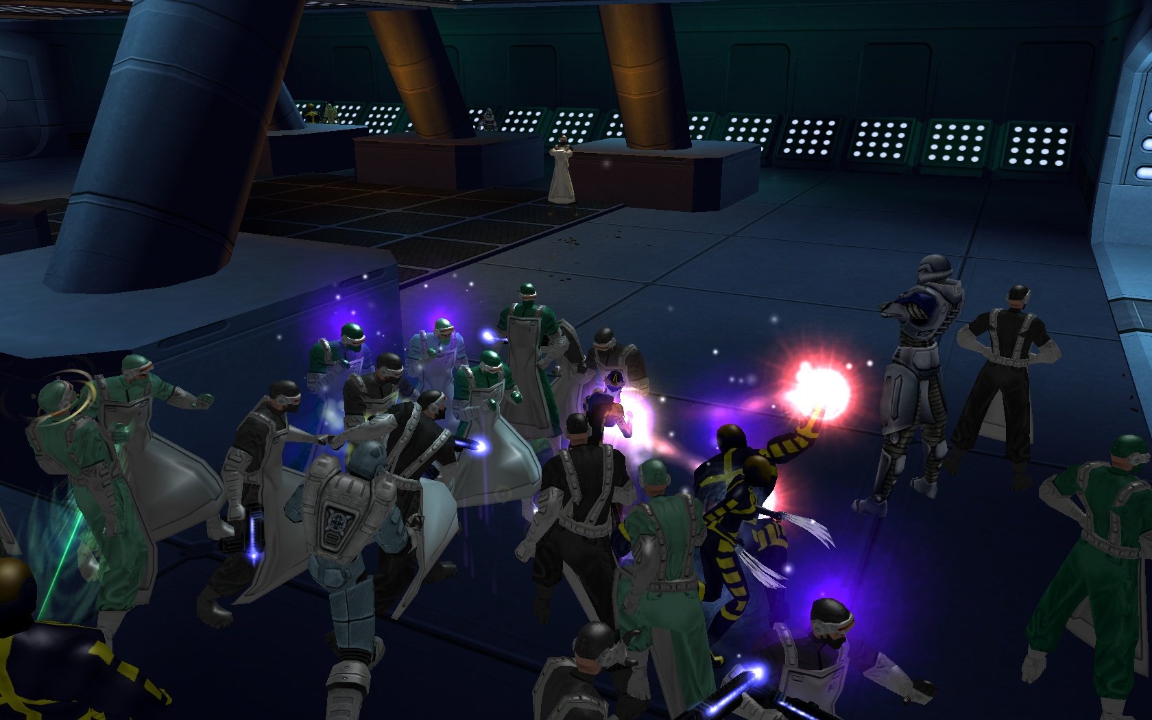 This was an Invulnerability/Energy Melee Tanker, so no damage in the taunt aura, no damage auras of any kind for that matter. I have no taunt enhancements or set IOs slotted in it either, just common IOs, 1 End Reduction (Lv25) and 3 Defense (Lv30) to be exact. I suppose it could still be a side-effect of the changes to taunt auras taking sets, but I'd imagine needing to have a damage proc of some kind slotted in order for it to do this. Near the end of that same mission in the boss area, I had six or seven Embalmed standing around me squatting while I ignored them and took out the other enemies that were actually attacking. Once I took out the threats I sat there for about another minute just watching the Embalmed squat and reset before picking them off one at a time. On a side note, It's too bad you'll need to bring the spawns in line, I was finding it rather fun as-is... perhaps you could note down what's making them so unsportsmanlike in order to use that for some future content? 😄