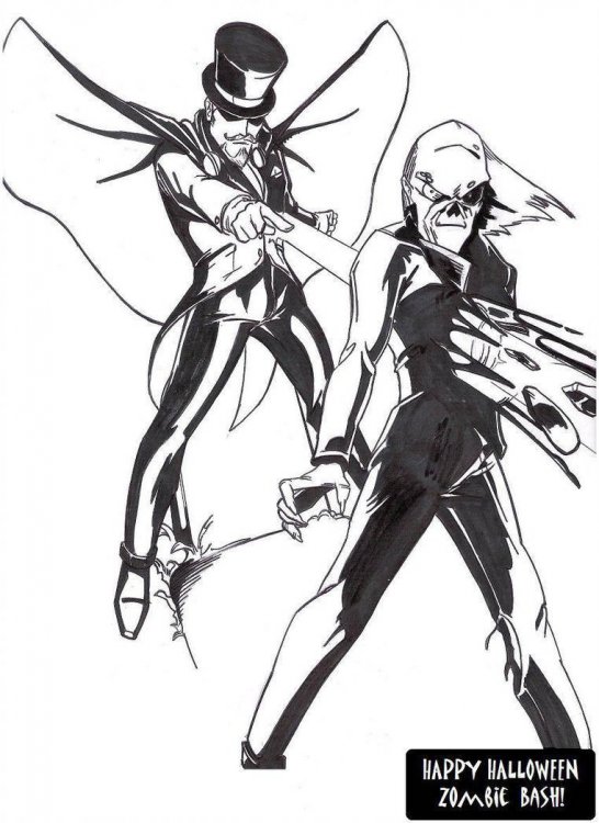 I ran the majority of my CoH lotteries while in the A.S.T.S. but opened it up to the allied super groups even if I wasn't currently on that individual team yet. so the lotteries got pretty big. The next couple were one-off lotteries but they are still Mariner's wins. Airboy-01: Guard-01: (This lottery was a funny one, I allowed people in the Super Group to "sponsor" one of their unaffiliated characters, and all they had to do was log in with their A.S.T.S. hero and earn some SG Prestige. I say allowed because one of my die-hard rules was that all entries had to be SG related.) The good Doctor here is probably Mariner's longest run or best known hero and I have drawn him a lot as he survived the transfer to CO and we both ended up on the S.A.S. team. I'll keep it CoH related here though. Zombie Bash-2: (I've drawn this villain many times as well and it was actually Mariner who named him Seymour Graves.) AC -