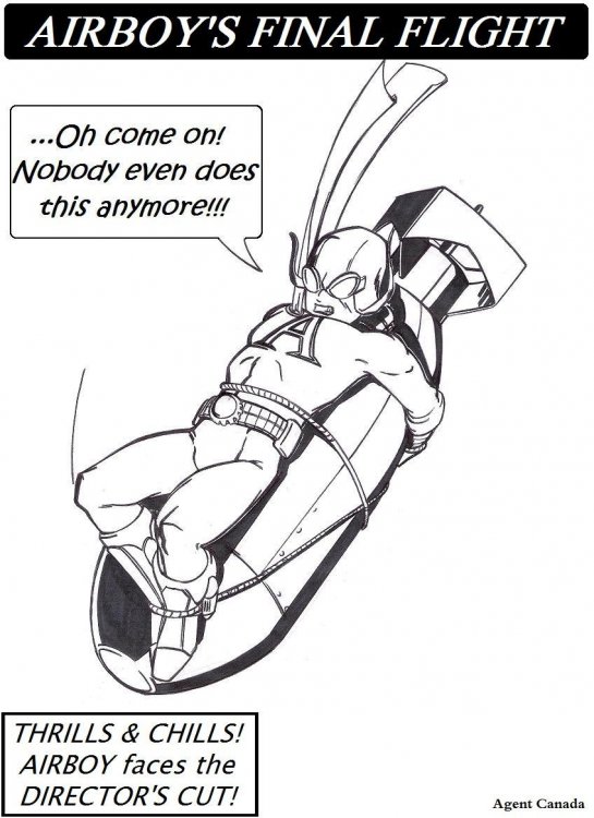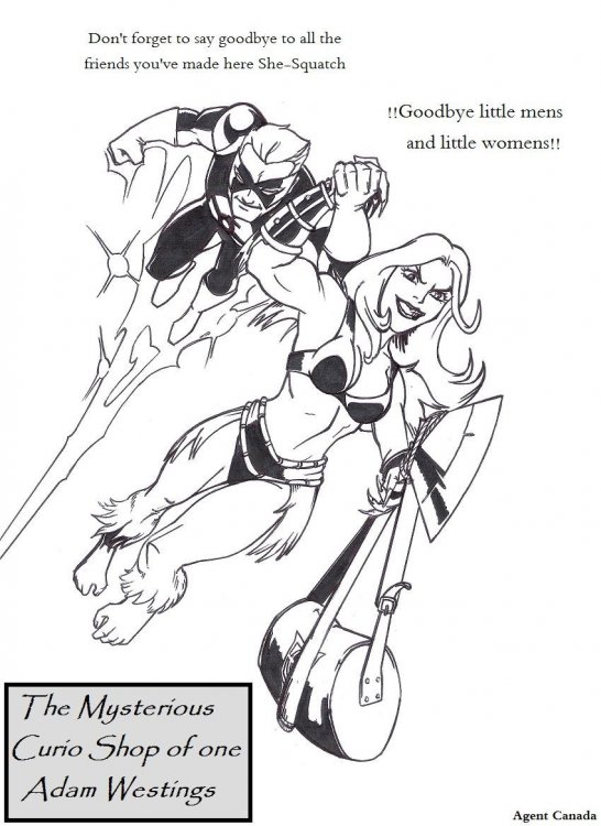 I don't really use it anymore but you can visit my old dA page here. https://www.deviantart.com/agentcanada Here's the last two related coloured ones I have. clobberin_01_in_color: (The same artist that coloured the Alienix one also did this one up.) TseuWck: (This one and a bunch more were coloured for free on the Champions Oline forums as part of that whole Grand Prize attitude I talked about earlier.) That's it for now and thanks. AC -