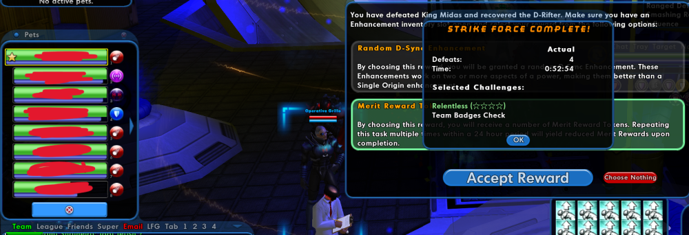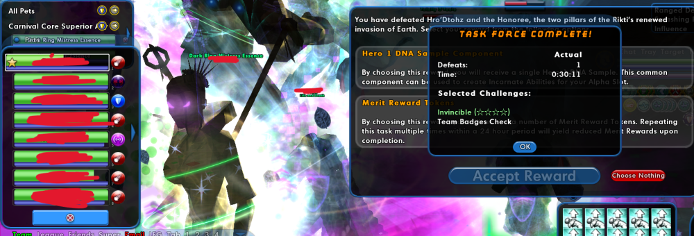 Except the meta runs already include Clarion and Incandescence, and the Barrierless runs I just referenced use Rebirth and even Ageless Radial. KM 4Star ITF runs sometimes use Ageless Radial. Meta Aeon runs swap to Clarion Radial during the last mission for the range boost, and Corrupted runs, which are a type of run where you only use Corruptors, Tanks/Scrapper-tank, and Blasters, but don't allow Kin, Nature, or Cold, utilize Ageless Core as well. Not really sure what you're looking for at this point, because if your issue is cookie cutter teams that all use Barrier, I've just given you a ton of examples that didn't use barrier, have varying ATs, with even a widow tanking instead of a tank, and hell, I've tanked it with a toggle-less tank that only uses Brawl. And any change that would make "bigger defense and to hit numbers" irrelevant would be a change that would likely affect full 8-man teams. Regardless, it's been consistently true throughout the majority of this game's history as far as I know that the smaller you make the teams, the more restrictive the team comps get. That even applies to iTrials (for some master of attempts). You say they are Charity ATs...but with the way the game is designed makes it so that in your scenario, the stuff that is currently considered meta would only be even stronger. One example: the reason we don't need Dominators or Controllers in Lady Grey is because every AT has access to holds, and it's just a fact that other ATs also offer more damage. In LGTF, if you hold Dragon, his stats drop considerably. Turns out though, that it's just faster to DPS him outright than it is to try and keep him held the entire fight. The DPS you lose trying to keep him held is worse than the reduced DPS you do when he isn't held. Same is true in ITF--if you hold the Emerald barrier nova, it becomes unkillable and Romulus' Regen drops to 0, making him easier and quicker to kill....except that you lose more investing resources in trying to keep that nova held than you do by just, again, outright DPSing and debuffing Romulus manually. The mechanics exist to do everything you're describing and to open up and encourage different strategies...the issue you moreso have is that most people don't want to spend hours doing one thing when they could spend one hour doing multiple things...so the speedier tactics seem to win the day when it comes to hard mode content, and as someone who leads them regularly and teaches people them constantly, I am in that camp. Leading these things is straight up exhausting, and doubling or tripling the amount of time I have to spend leading them is a prospect I dread lol The problem is moreso in how the power sets have been developed and how the proliferation via patron/epic pools impact that as well. As I said, you can basically do whatever you want. Just have to be creative with the team.