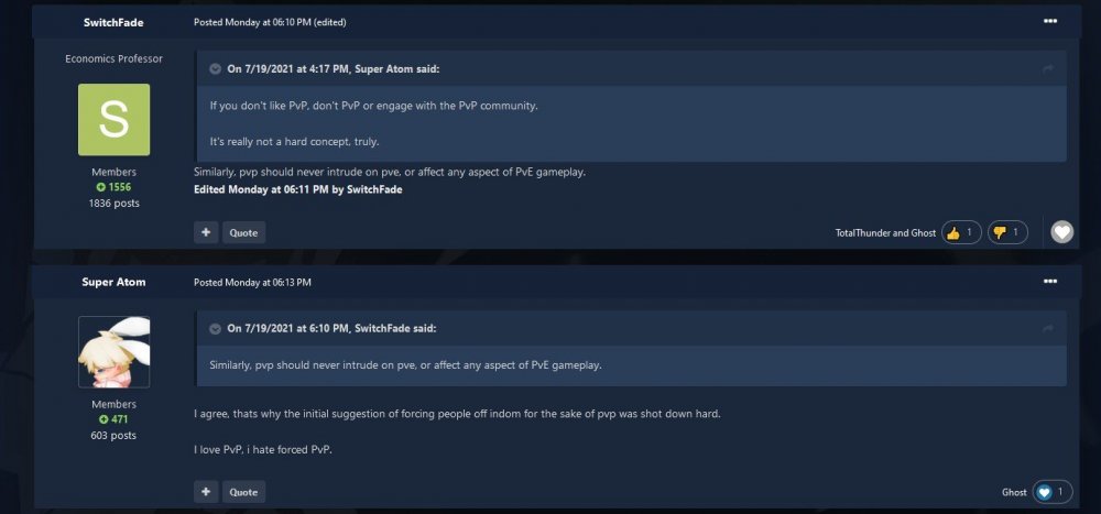 I agree, thats why the initial suggestion of forcing people off indom for the sake of pvp was shot down hard. I love PvP, i hate forced PvP. -