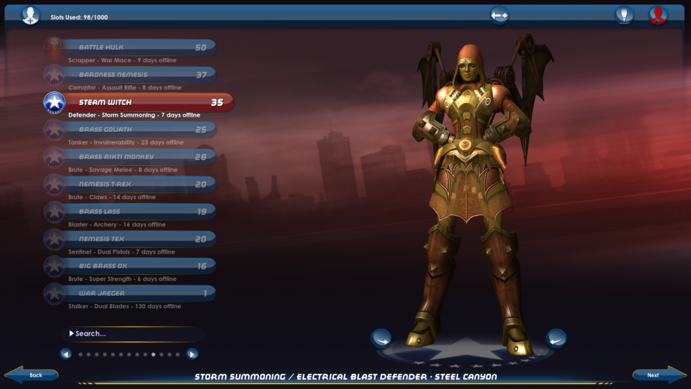 2. My main baddie on Live was named Devourer. Homecoming had been going for a year before I discovered it so it was taken on Everlasting. After a two minute brainstorm session I decided to do a play on Nemesis?: Devourer? 10 years ago, after a long and infamous career, the villain known as Devourer disappeared. Six months ago a woman bearing remarkable physical similarities and powersets to Devourer appeared in Paragon City. However this time she appeared to be fighting on the side of angels. Is this the same woman who once terrorized the streets of Paragon City? Has the Butcher of Brickstown truly reformed? Or is she perhaps a clone or a robot impersonator or a visitor from an alternate reality? Only time will tell. About once a month I try to rename her. Maybe one day I'll be able to visit Null the Gull and release evil on Paragon's citizens once more. In the meantime, sure I guess I'll go clear out that Council base again.
