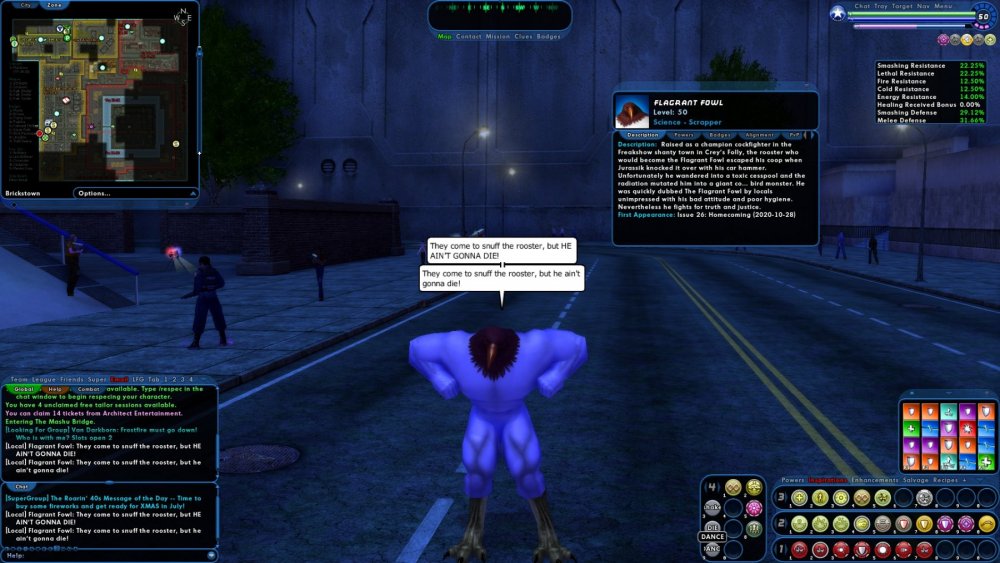 9. Action Ken's bio: "A stray bolt of magic hit this child's toy turning it into an 8 foot tall giant with 22 points of precise articulation. Tired of his life of waiting in the car outside of shopping malls and bachelorette parties, this former doll has decided to become a man of action." Unfortunately for all of Paragon City's citizens, Action Ken's clothes were not embiggened by the same magic bolt.