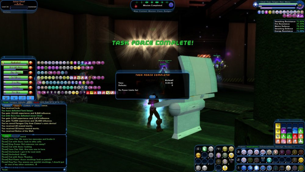 Wonderful Tanker Tuesday Penny Yin Run on Everlasting tonight. Did not have a single repeat primary or secondary by complete chance! We had: 1. Electric Armor / Super Strength 2. Stone Armor / Fiery Melee 3. Bio Armor / Spines 4. Radiation Armor / Radiation Melee 5. Super Reflexes / Martial Arts 6. Dark Armor / Dual Blades 7. Shield Defense / Psionic Melee 8. Willpower / War Mace