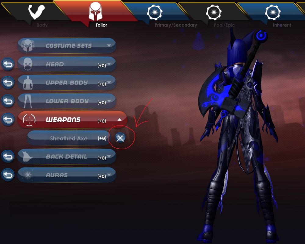 3. Oh dear, I think Snarky slept through the Page 4 changes. 😛 @doc_miller you can see the option Shadeknight is referring to in my screenshot. Click that so that the swords are crossed will show the weapon sheathed on your back.