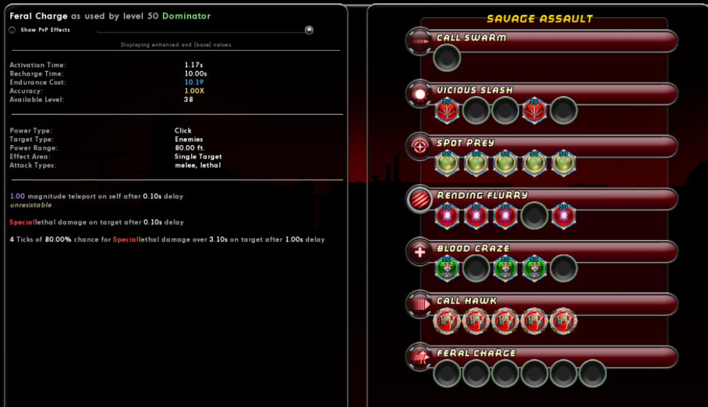 I cant Slot a dominator archtype set into the savage Assault power Feral Charge, but game tell me its ok, but the slots dont get green