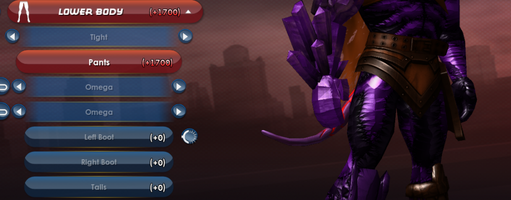 I have found a bug in the tailor. I try to put Omega pants on my character, with the Omega pattern. I choose the relevant parts, see that the changes will cost me about 2000 influence, and click through to complete the changes. My influence is reduced by about 2000. I look at my pants outside of the tailor screen, and lo and behold - they are regular, albeit stylish purple tights. NOT WHAT I WANTED, SERGE! I go back in the tailor screen, and my Omega pants with Omega pattern are now regular tights. I have added some screenshots to show what happens, and also my chraacter's costume file (with the Omega pants), in case someone wants to see if they can repeat the experiment. It's for a Huge bodytype. Hopefully this can be sorted out because i'm running out of influence. Here in this screenshot we see me in the tailor screen, picking the Omega pants: Next, I check myself out in the Icon store. NO OMEGA PANTS! Backk in the tailor screen. NO OMEGA PANTS! StoreBrute.costume