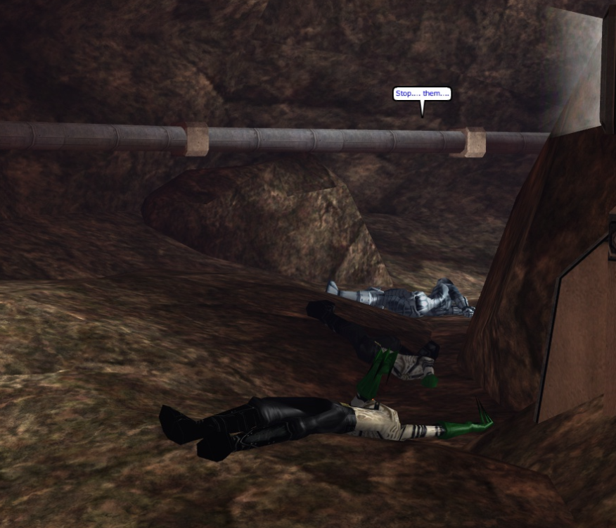 Obviously I’ll defer to the OP themselves, but I’ve re-read every post they’ve made in the thread and I don’t see it. They just needed the body found as part of the mission and wanted to avoid the body bag route if possible — to “Show the NPC has been murdered and the player finds the body,” “even if they can't click on it.” The body bag route is probably the most reliable as you can make it an objective and then use the ambush without any potential problems, but since the whole point of the thread is not doing that, then the way I’d probably handle it myself is more or less your second suggestion: -Pick a smaller, linear map. -Set mission completion to Find the Exit. -Have one or more enemy spawns or patrols midway hinting at the awesome murder they just done. Have a mandatory one that changes the objective to finding out what happened. -Put the dead guy in the last room along with one or more glowies constituting evidence of the frameup. The corpse itself can shout the shocking reveal. -Have said glowie spawn the cops or whoever back in the middle and/or front areas shouting narratively helpful things about you being the killer, whom they presumably intend to bring to justice. Its not perfect, but this is the AE, where our primary choice is what kind of mess you want to put up with.