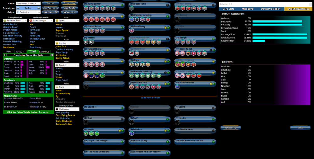 This is how I've been running mine. It's a bit legacy at this point as well, and has come concept stuff thrown in instead of what's optimal. Commander Crumpets - Tanker (Radiation Armor - Super Strength).mbd The good news is it still drives just as well as when I made it!