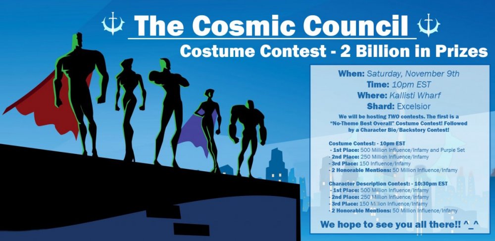 Hello everyone, Thank you to all the amazingly creative heroes and villains who showed up to our Costume Contest, yesterday! You guys are what make Excelsior such an amazing shard to be apart of! The Cosmic Council loves being a part of this community; we hope that you all had fun and enjoyed coming out to our contest! I've pasted some pictures from the event down below! If anyone has any additional photos, please feel free to send them to me either through message on the forums or via Homecoming Discord - (Cosmic Tempus). Thank you all again! ^_^ Costume Contest Finalists: ๐ Dualstar - Grand Winner!!๐ Judgement Day The Fireward Warden Illuzion The Opossum Character Description Contest: ๐ Ruhk Kraggen-Kor - Grand Winner!! ๐ Shifted Dawn Phil Noir Moon Mage Raven the Rogue Pictures: https://imgur.com/a/MZD3Shi