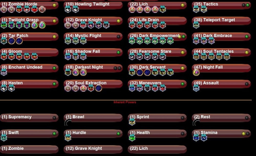This is using latest HC Database, as current Mids version is still a bit buggy, so everything is correct. The Idea is to have decent resists mostly, around 20 for the lowest, 40 for mids and dark/lethal near cap and to use the mm mostly as a spammer of the new attacks to try to pop ghosts during mission cleansing. Some powers are for utility/rp , like Mystic Flight and Teleport Other (which helps a ton during missions or sfs to summon dead bodies to rez) I have tried to take advantage of some powers to slot some full sets and others to slot with resist/def sets for pets for survival , though I know I will lose zombies like a bad cheap zombie movie when the walkers meet the protagonists. This is the general idea, I am more or less fixated on powers though I can replace perhaps the soul ones, with anothee resistance power and a diff power from it. Mostly wondering about enhancements. I know this build can be expensive, but its part of the fun as I really like to get to 50 with cheap ios and then begin grinding the inf for cool enhancements. Any suggestion welcome! There arent really that many Necro/Dark builds post changes, and I relish the idea of being a more active mm spamming the 3 basic attacks to support my pets. I have a decent +to Hit from kismet and enhancements to avoid slotting +acc in individual slots/powers and a focus on mostly resists rather than fancy combos, like extra damage or build ups etc. even tho I slotted some on the basic attacks, but can change if you guys feel its wasteful Want to keep it simple, but super open to suggestions, specially alt builds of necro/darks that take advantage of the new MM attack mechanics. If this works will prolly upgrade my array of MMs, which is the only class I really really enjoy playing after all these years 🙂 This Villain build was built using Mids Reborn 3.4.7 https://github.com/LoadedCamel/MidsReborn Click this DataLink to open the build! Level 50 Magic Mastermind Primary Power Set: Necromancy Secondary Power Set: Dark Miasma Power Pool: Sorcery Power Pool: Speed Power Pool: Leadership Power Pool: Teleportation Ancillary Pool: Soul Mastery Villain Profile: Level 1: Zombie Horde (A) Mark of Supremacy - Damage (3) Mark of Supremacy - Damage/Endurance (3) Mark of Supremacy - Accuracy/Damage (5) Mark of Supremacy - Accuracy/Endurance (5) Mark of Supremacy - Accuracy/Damage/Endurance (7) Mark of Supremacy - Endurance/Pet +Resist +Regen Level 1: Twilight Grasp (A) Doctored Wounds - Heal/Endurance/Recharge (7) Doctored Wounds - Heal/Endurance (9) Doctored Wounds - Heal/Recharge (9) Preventive Medicine - Heal/RechargeTime (11) Preventive Medicine - Heal (11) Preventive Medicine - Heal/Endurance Level 2: Dark Blast (A) Cloud Senses - Chance for Negative Energy Damage (13) Cloud Senses - ToHit Debuff Level 4: Gloom (A) Cloud Senses - Chance for Negative Energy Damage (13) Cloud Senses - ToHit Debuff Level 6: Enchant Undead (A) Steadfast Protection - Resistance/+Def 3% (15) Impervious Skin - Status Resistance/Regeneration (15) Gladiator's Armor - TP Protection +3% Def (All) (17) Unbreakable Guard - +Max HP (17) Impervious Skin - Resistance/Endurance (19) Unbreakable Guard - Resistance Level 8: Tar Patch (A) Impeded Swiftness - Accuracy/Slow (19) Impeded Swiftness - Range/Slow (21) Impeded Swiftness - Chance of Damage(Smashing) (21) Impeded Swiftness - Endurance/Recharge/Slow Level 10: Life Drain (A) Touch of the Nictus - Accuracy/Endurance/Recharge (23) Touch of the Nictus - Chance for Negative Energy Damage (23) Touch of the Nictus - Healing/Absorb (25) Touch of the Nictus - Healing/Absorb/Recharge (25) Touch of the Nictus - Accuracy/Healing/Absorb (27) Touch of the Nictus - Accuracy/Endurance/Healing/Absorb Level 12: Darkest Night (A) To Hit Debuff IO Level 14: Mystic Flight (A) Winter's Gift - Run Speed, Jump, Flight Speed, Range (27) Winter's Gift - Run Speed, Jump, Flight Speed, Range/Endurance (29) Hypersonic - Flying / Increased Fly Protection (29) Hypersonic - Flying Level 16: Howling Twilight (A) Annihilation - Chance for Res Debuff (31) Absolute Amazement - Chance for ToHit Debuff Level 18: Shadow Fall (A) Red Fortune - Defense/Endurance (31) Red Fortune - Defense (31) Red Fortune - Defense/Endurance/Recharge (33) Impervious Skin - Status Resistance/Regeneration (33) Impervious Skin - Resistance/Endurance (33) Reactive Defenses - Scaling Resist Damage Level 20: Grave Knight (A) Command of the Mastermind - Accuracy/Damage (34) Command of the Mastermind - Damage/Endurance (34) Command of the Mastermind - Accuracy/Damage/Recharge (34) Command of the Mastermind - Damage/Endurance/Recharge (36) Command of the Mastermind - Accuracy/Damage/Endurance/Recharge (36) Command of the Mastermind - Recharge/Pet +AoE Defense Aura Level 22: Lich (A) Sovereign Right - Resistance Bonus (36) Soulbound Allegiance - Damage/Recharge (37) Soulbound Allegiance - Damage/Recharge/Accuracy (37) Soulbound Allegiance - Recharge/Accuracy (37) Soulbound Allegiance - Damage/Endurance (39) Soulbound Allegiance - Chance for Build Up Level 24: Soul Extraction (A) Expedient Reinforcement - Resist Bonus Aura for Pets (39) Call to Arms - Defense Bonus Aura for Pets (39) Commanding Presence - Threat/Placate Resist (40) Edict of the Master - Defense Bonus (40) Empty Level 26: Dark Empowerment (A) Preventive Medicine - Chance for +Absorb (40) Numina's Convalesence - +Regeneration/+Recovery (42) Panacea - +Hit Points/Endurance (42) Regenerative Tissue - +Regeneration (42) Miracle - +Recovery (43) Preventive Medicine - Heal Level 28: Fearsome Stare (A) Unspeakable Terror - Disorient Bonus Level 30: Dark Servant (A) Gravitational Anchor - Chance for Hold (50) Gravitational Anchor - Immobilize/Recharge/Accuracy (50) Gravitational Anchor - Recharge/Accuracy (50) Gravitational Anchor - Immobilize Level 32: Hasten (A) Recharge Reduction IO (43) Recharge Reduction IO Level 35: Maneuvers (A) Shield Wall - +Res (Teleportation), +5% Res (All) (43) Kismet - Accuracy +6% (45) Shield