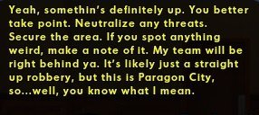 Arc 24 from our second author on "TerroirNoir's Cable Channel of AE" Reviews is @cranebump's Fallout 1: The Unlock. Mission 1: Blink. So I'm resting up from the madness that surrounded the whole "P. Mayhem Goes to Cimerora" thingy, you know, feet up and my coffee laced, and I receive a call from one of my favorite people to work with. That's Lt. Briggs-Hughes. Remember her? Yeah. Scrappy gal who gets things done. One of the good ones. Right. I'm already slipping on my armor as she talks because if she needs help I'm gonna go help. She's keeping it on the downlow though. Doesn't "know" me (wink). But that's government politics for you I suppose. Anyway, she has a spot of trouble at an S&L. It caters to vets mainly ---wait, veterans or veterinarians? I'm gonna assume the former but in Paragon you never know. Lot of Master Minds around with Beasts and so on. Sorry, go on? Briggs-Hughes's trainees are already in the S&L. Things are squirrely though. Closed sign down when it shouldn't be, doors locked. No answer. Yeah, I'll head in and take a look. Okie dokie, let's have a little looksee. Sheesh. First thing I find is a body. Beaten to a pulp. Nasty. No sign of Briggs-Hughes's team though. Next up is a safe. Still with loot in it. Weird. Body pieces nearby. Like they stole it and had a fight over it then they left. Leaving it behind like it didn't matter. Definitely weird. Let's see what's on this. Hmm. An AC crew was supposed to fix some ventilation. Didn't happen. Regular Ghost Town in here. Ok, it ain't Dark Astoria but what is? Ok, further along I find some gas tanks. Empty. But set on wide dispersal. Made by FinnCo. Interesting. Another body. It's the AC repairman. Beaten to a pulp, just like the earlier body I found. There's a baseball bat beside him, like he was using it defend himself. Why does an AC repairman need one of those? And wouldn't you know it, there's a massive hole in the floor leading to...well, I dunno. We will have to see. And there's some folks down there. They LOOK like civilians, angry civilians but still just civilians. Stealth on then and slip by them. No need to go all Justice Vigilante on them until I know what's going on. Ah, of course we're down in the sewers. Like I don't spend enough of my time here already. You know, in all the time I've been investigating things I've NEVER seen a sanitation worker down here. I mean I'm pretty sure the city has taxes for that but I've never seen one. Something to mention to Brighid Moreira when I see her in City Hall. Meanwhile. Trailing along the dank tunnels, avoiding "patrols". I say patrols but these people are a bit blank, like something is controlling them. And they have a captive. Might get some answers if I free them. Looks like I AM hitting some civilians after all, even if I don't want to. Rescue mode engaged! I dive in and drive them away from their prisoner. Sheesh, these people are tough and I'm a super! I'm always saying I'm a mid level supe in a city of more powerful supes, but even so I'm supposed to be stronger than a roided up bank teller! And that's all of them...wait, what the hell is hitting me? I'm still getting shot! Some of them can fly now! Crap. Well, I'm NOT putting up with that! Down you come, lady! Ok, Mister. Spill it. What the hell is going on here? Come on! Well, that's about as useful as a bicycle is to a fish. Wait. You're here to monitor that machine in the corner? Why? Let's have a look at that machine then ---hey! He just ran off! Grr! Ok, machine. This has been altogether odd. I need to talk to Briggs-Hughes about this. The ESWAT team have the remaining bank staff in shackles. They're looking a bit rabid though. Not at all normal. Talking to Briggs-Hughes, yeah, looks like the gas turned these folks into pseudo supes or something. Not gonna lie, it's odd. And maybe we should investigate this FinnCo. That name seems familiar though. [Mission 1 = Great moody start to a mystery with one of my favorite NPCs as the contact. Liking the build up so far. Let's see what's next!] Mission 2: Drive. Some of those Skulls got through the teleporter, apparently along with some of the bewitched (that's what I am calling it) bank staff. And something similar happened in Steel Canyon. Skulls show up, bank staff attack them and chase them though a TP device. Briggs-Hughes is almost stunned when she says "we have to stop people hurting the Skulls". Yeah, you and me both. So, with the aid of a captured techspert I'm gonna scoot through one of the devices myself and see where that lands me. Glorious. Going in blind as usual. And AWAAAY we go! Great, another dingy place. Why don't gangs want to live in NICE places? What's with that? I run into a few Skulls and have to take them down before encountering some of the crazed bank staff harassing a captive Skull. I "rescue" him, but he just hightails it out the door. Can't say I blame him to be honest. On we go. Jeez, the city needs to do some eminent domain on these places and clear them out or patch them up or something. Of course, since the Rikti War, and the the Praetorian War, and all the other whatevers, and lord knows what the cost of running a War Wall is, I suppose there's not a lot of money in the war chest to do anything much. Further ahead I find another FinnCo container. BA332 written on it. Make a note of that. Well, she came out of almost nowhere! And how much steroid type gas does it take to make a Perky Secretary take on a super? I mean actually be able to as opposed to just thinking they can, because the latter is easy. I run into a Bone Daddy Skull boss and his companions. They're not happy with the bank staff but they're also not pleased to see me. Well, I leave them nursing sore heads on the floor and move further in. And success! Or at least I think it is. Who is this person? Ok, let's get to is, Site Boss! And on we go! Wait, they summoned zombies?! Ok, they're with the Skulls, and the Skulls can sometimes use Dark powers, but I've not seen a
