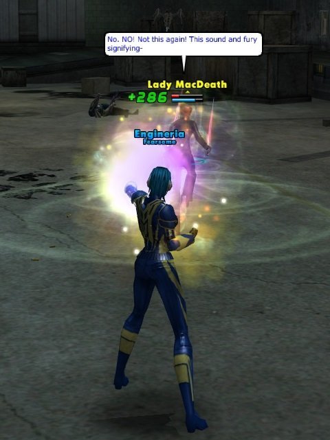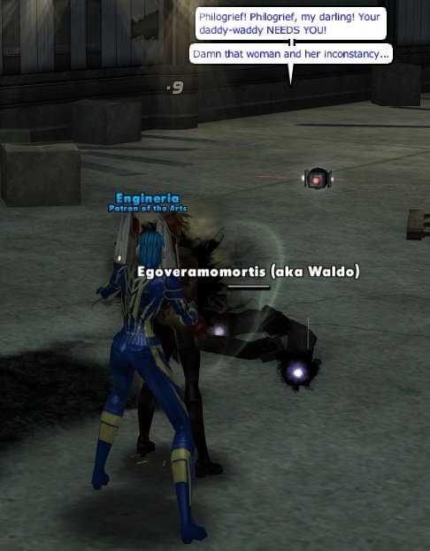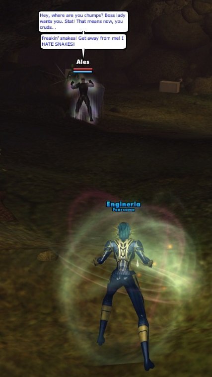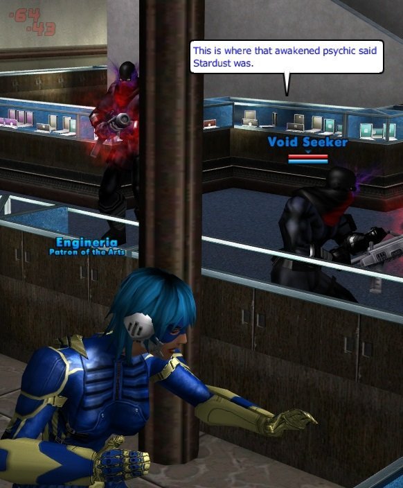 Arc 24 from our first author on "TerroirNoir's Cable Channel of AE" Reviews is @Ankylosaur's All That Glints 3: Super Ego Maniac. Mission 1: A Meeting of the Minds. Sometimes you need to kick back and meet with your friends, especially since Araminta came back from helping out some newbie hero called Storm Warning and has been worrying about her. A coffee with Hornet from Wyvern was on the To Do list. Been putting it off for a while. You know how it is. Busy busy busy! So we're having a coffee in the Arrow Diner in Atlas Park's Downside. It's not the best part of the Park but it's great coffee. "Dhahabu?" Asks Hornet. Yeah, that's a place. Pretty but so different to here. And I woke up a while back to find a floating painting talking to me! He mutters something about being thoroughly sick of Nerva and maybe a few floating bits of artwork are just what he needs. And then Aurora Pena just...appears. She's immediately all bidness. I dunno. Do Praetorians EVER take time off? I suppose they have so much to prove after the war. She recounts how she took the Soothseer stone to Dr. Frost at S.E.R.A.P.H. The same one she's planning to use to disrupt the Apparitions we encountered before. Hornet is puzzled by me talking to thin air but he's piecing things together from my side of the conversation. Then Aurora vanishes. Not that Hornet ever saw her according to him when I gave him a quick rundown on the chat. He offers to give me a lift to Steel Canyon in his Arachnos Flyer. His what? That's you and the Meteors now. Is Recluse having a yard sale or something? Nevermind. Off to Steel Canyon! Hornet lands and says he'll wait for me before putting his feet up. I get a PING mentally from Aurora telling me that some of the 5th Column have captured her while she was waiting for me! You'd think a psychic would be impossible to sneak up on! Ok, I'd better go rescue her------WAIT! Is Hornet angling for a date?! Waiting for me? No, no. Eyes on the prize, Engineria. Go rescue Aurora. Ah, there she is. Ok, Vamps can be trouble even for psychics. But vamps don't take well to being irradiated! (Nor does anyone else for that matter) Ok, 5th Column nada and Engineria FTW! Aurora, what's the skinny? She was taken completely off guard. Hmm, you Praetorians need to lighten up a bit. You're so super focused on your thing that other stuff gets lost in the peripherals, you know? Ah, she's not listening. Well, let's go find Dr. Frost then. Again in this S.E.R.A.P.H. building. Hang on, I checked this out earlier for my own curiosity. I just need to scroll a bit through my phone to find the shot. SEE?!! It's a bank half the time! Ok, it's a mysteriously closed bank. And there was that one time that I was doing a job with the Meteors when it WAS a bank, but they gave me some goggles so I could see the S.E.R.A.P.H. entrance. So we go inside and I see Officer Butler from Longbow. She's waiting for us. Ah, that's nice. You do know there's random 5th Column literally outside? Anyway, let's go see Dr. Frost about this stone thing. Or stone. "Stone thing" sounds like a pillar or monument or something. She too is straight down to bidness. We're gonna monitor things from here while Aurora heads out to start the disruption. Scanning on a nearby console we can see that as Aurora does her thing that in fact the appearances do decline. That's good. But in the middle of the overall decline there are spikes in Skyway and Boomtown. Boomtown? Oh that's not good. Lots of Clockwork there. And here too it seems! Blast. And then some actual blasts! How the hell did they get by Butler? And Aurora has been blindsided by Clockwork! See? Too much focus on one thing and out of left field you get bopped on the noggin! Not that that hasn't happened to me too over my career. Hang on Aurora, I'm a coming! She's thankful though and after clearing around us suggests that we jet back to Hornet and get out of here to regroup. Sounds like a plan. Climbing into the flyer we see Hornet has slept through all of that. Lucky man! We lift off and I fill in Aurora about the spike in activity...and then both Engineria and Aurora see Katie Douglas. Another psychic projection. Hornet glances around as the chat changes before shaking his head and keeping his eyes on the controls. Katie wants to know what's going on. Aurora fills her in. [Mission 1 = Classic. Classic @Ankylosaur intro mission. Small scale but lots of set up. Good stuff! On to Mission 2!] Mission 2: Mental Highways. So with Katie filled in on Aurora's op, we get an update from Katie. As the Apparitions started to lose their grip on Primal Earth, they latched on to anyone with some psychic ability. And with defences weakened these folks were safe ports for the fleeing spirits. As for the Clockwork, they are already infused with psychic energy and some sort of mental magnetism happened, causing them to be hosts too. Ok, we have Boomtown and Skyway to check out. Aurora is going to gather her allies and check Boomtown. Katie will come with Engineria to Skyway. Hmm. You know, "Divide and Conquer" doesn't mean we split up. But on we go. Hornet drops us off in Skyway and heads for Boomtown. Skyway is chaotic. Possessed Citizens and Clockwork are causing havoc everywhere. And they've stunned and grabbed Katie! I free her and we proceed to look for allies. In particular Synapse and Mynx should be here in the park, but they're missing. That's not ok. No no no. Somethiing that can take out Synapse is mucho bad. Hang on, Katie. I gotta call Buddy and tell him about this. One of the Freedom Phalanx getting captured is rare. Well, rare-ish. And I took a pic of it. Right, let's go rescue him. I'm sure he'll be fine about that. Not in the least bit arrogant or anything. Task Force? I did one with you last week! (I think it was last week) Did that not work? Or is this an escalation? Anyway, there's our next target, Colonel Bolton of the PPD. Let's get him! I wonder what happens when you speed boost Synapse....oh. Well, 