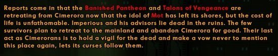 The next arc on "TerroirNoir's Cable Channel of AE" Reviews will be part of the Interludes, Side Trips, and One-offs, and is @Jiro Ito's On the Claw-Tipped Wings of Betrayal. Now, have I mentioned that time travel is starting to have me doubt what's real and what's not? It absolutely is. Mostly I blame the Midnighter Club folks and their obsession with that crystal. And now they have a cube thing with access to a Labyrinth! Dear me! Mission 1: Chapter 1. So resting up (like I ever get rest!) after working with Briggs-Hughes, I end up somehow answering a call to return to ancient Cimerora. Not from any mustache bearing gent this time though. It seems that after Romulus was defeated one of his captured generals, Terentius, wants to speak to me. Me? What did I do to single myself out like this? Who can tell? He speaks contritely but not humbly, as far as I can tell. He's more annoyed that all Romulus's plans to "save" Cimerora only led to worse. But he wants peace with his former brothers and will give information on where those still loyal to Romulus are hiding as they no doubt plot to free him. He asks only that his beloved Okythoe, who supplied this information, is spared. Well, we will see, won't we? Why is it always caves? I mean here in the ancient Mediterranean, well it's lovely. But no, caves caves caves. Sigh. Right. First things first. I find Justinus Clarus. Oho! There you are! Well met, and all that. And of course instantly we are attacked! But with my Rad Blasts and Justinus's arrows we see them off. Let's explore further. And I head up around the corner and STRAIGHT INTO THE ARMS OF A MINOTAUR! ("Straight into the arms of a Minotaur"? Worst. Love. Song. Ever.) Justinus is a little behind so I'm facing this guy and his handlers solo. And... ...that did not go well. I think if Justinus can't surreptitiously drag my body away I'll have to use the mediporter. And plan for this. Every time I forget about the minotaurs. And I bet there will be cyclopes too. Now, where was I? Oh, that armor piece will need hammering out or replacing. I don't normally get stood on like that. And I rip his Endurance out so he can't use his abilities to murder me! This is going a little better. Justinus arrives and seasons him with arrows. And take a deep breath before moving on. Justinus and I move further into the caves and deal with a General Cordius. He fights well but we defeat him in short order. Plenty of these renegades that Terentius spoke about throughout the caverns though, all intent on putting me to the sword or whatever the phrase is. Didn't I say? I told you! A cyclops! I KNEW there would be a cyclops after I ran into that Minotaur. And he's pretty angry about something. I could just ask him "Where's the Beef?" But he won't get it. However THIS time (PMT = Post Minotaur Time), we're ready for monster style attacks and the ripping of the Endurance happens first! Down you go, you one-eyed maniac! No eye patches for you! Ok, we've reached an open area now with members of Cimeroran traitors patrolling the place, guarding Okythoe. And this Okythoe... she does NOT look like the sort of woman that maybe Terentius thinks she is. Or if she is then love is definitely blind. Spare her? She has a giant axe and seems intent on our imminent demise so I'm not willing to just stand here and let her hit me. ARGH! Set up! Justinus, we've been set up! She was expecting us! Wait, idol? That was mentioned before concerning the voyage of Marcus Valerius and that DOES seem familiar. What timeline am I in now? Has this already happened for me? Or is now currently have been happening before? Tenses break down with time travel! Ok, I have no idea what you just did, Justinus, but it worked! But Okythoe has fled! Now, run! There's a swarm of Talons intent on picking the meat from our bones, bones and meat that I am very attached to! We leave and I return to Terentiuss's cell. He's a bit glowery and is not the seemingly contrite man I met yesterday. He didn't expect to see me again is what I'm thinking. Well, we're gonna have ANOTHER little chat, my Roman friend. Oh yes. [Mission 1 = Straight into the action. Interesting to have an antagonistic contact. I'm looking forward to seeing how this develops. Good stuff!] Mission 2: Chapter 2. Yeah, Terentius, I survived. Surprised. Oh, you warned her that I was dangerous? Seems she didn't listen to you. Terentius says he allowed his love to blind him. And yes, she's alive. Got away in that last flashy fight. My days, but this guys is full of himself. And I've spoken to Transmuter! He'll tell me where she is now but only because I'm part of her plan. I apparently have no idea what it means to defend, to be the shield for my nation. You're totally right. I don't. And I don't because I don't think I'm Numero Uno. Right, you sack of BS in old timey armor, where is she? Oh, in a cave. Well, seems about right. Justinus is going to be coming with me too. That's good. He's a useful man with a bow! Ah, there he is! Yoo hoo! Justinus! Nice dead Elementalist you got there. Shall we continue the search for Okythoe? Yeah, it's definitely another trap but at least THIS time we know it. C'mon. So Justinus. We're gonna find out what Okythoe's plan is, and once we do we're gonna try and take her down. And while that flash bang thing you did last time was hella impressive, I couldn't see for a few minutes after. So, less of that. Unless we've no other option. Hmm, a mystic portal thing. What does this do? It does nothing. Or at least nothing useful to us. For all I know there's an alarm going off somewhere and even now Talons of Vengeance are rushing to swarm all over us. No, calm down. We'll deal with them. On we go. Clues clues clues. Here clues. Here boy! AHA! Wait, are you supposed to be glowing like that Justinus? You are? Alrighty then. It just looks a little off. Nevermind, let's see what this thing does. MY EYES! THE GOGGLES DO NOTHING! No? Not a fan? Before your...no, AFTER your tim