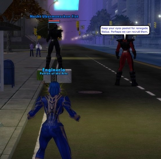 Arc 25 from our first author on "TerroirNoir's Cable Channel of AE" Reviews is @Ankylosaur's All That Glows 1: Nictus Amongst Us. I'm a little bit hazy after the whole trip to Cimerora. See, I ventured into the past to "aid" Terentius in his ordeal, and after all that I return to the present. Except...I don't know if I came all the way back to MY now. Let me explain. I step from the crystal in the Midnighter Club and after I go to the lockers and retrieve my phone I see there's a message from Lt. Buddy Bolton. He's thanking me for returning his call. I don't remember that call. I DO remember a Buddy Bolton though, and he wasn't... Let's just get to it. Be easier that way. Mission 1: Crystal Clear. So Buddy is in the PPD and he appreciates that I can ...bend...the rules a bit to get things done. Nothing illegal, but more practical. He's at the scene of a crime involving a Kheldian citizen. Ok, I'm intrigued already! Seems this guy's store was robbed and what was taken included a book, some crystals and some Nictus weapons. Why would a Kheldian have Nictus weapons? And now for the MOST intriguing part. One of the thieves was overheard saying "When Engineria shows, Stardust goes." Time to visit the store and find out what the hell is going on. Off to Steel Canyon then. Ok, Bolton lets me in and there's our Kheldian shopkeep, Orthas/John. He let's me have a poke around the place and look for clues. Orthas/John explains that the book stolen contained information about a "Dark Comet". Something he thinks is related to the Nictus, possibly a bigger form of Shadow Cyst. Nasty. While I'm looking at the office PC we get an attack by Void Seekers! Not sure exactly how they fit into the 5th Column hierarchy but they do. Nasty pieces of work intent on killing Kheldians. Or capturing them. Time to deal with these punks then! Fortunately I have some PPD back up already here! And Orthas/John also defends his store! We soon take them down and catch our breath. Finally getting to examine the CCTV footage and yep, there's one of the earlier thieves mentioning me by name. Nope. Nada. No idea why they would. Like I say, I'm not even sure I'm all the way back to the right spot in my own timeline. (Which reminds me, is there another earlier me out there...WAIT. Does that explain the other me I met working with Whipsmart? I'll never know for sure.) A last examination of the store's vault reveals the following. What to make of all that? I need to debrief with Buddy Bolton and get his thoughts on this. [Mission 1 = A nice little set up for a mystery. Plenty to go on and I've utilized the previous arc played to handwave that this arc is obviously set earlier 🙂 Looking forward to the rest.] Mission 2: Dancing in the Streets. Buddy Bolton has good news. Well, relatively good news. The thief that mentioned "Engineria" is one Wade Wainwright, a petty criminal. Lots of small potatoes crimes until word on the street says he merged with a Nictus...called Stardust. Ok then. One part of the puzzle clearer. Still no idea where I come into all this though. But a Nictus WOULD be searching for Nictus things, including possible N-Fragments. The crystals. Time to hit the streets and see what's what. Orthas/John says that Steel Canyon has seen a rise in 5th Column and so on presence. Oh great. That'll help. And there dear friends, is one Oberst von Andrian. Seems his gang is looking for the same thing I am, though he seems more general. Grab ANY as opposed to one guy. Do they wear lifts in their boots? Why are the 5th Column always so damn tall? Are the Council that tall? I'll have to check some time. Right now I'm a little busy working on the "the bigger they are" routine. Ah, still works. And stay down. (Examines the Oberst's boots. Nope, no lifts. He IS that tall.) And tucked into the boot is a recruitment list of Nictus AWOL from the Council. Stardust's name is on that list! Plus a map to a Council Void Hunter base here in Steel Canyon. interesting. Oh that's not good! Stardust has been captured and innocent bystanders have been injured in the crossfire! Let's take the fight to these guys! The PPD arrive and help take down the Voids. Stardust is all quiet for now. Let's see what he's up to. I'm going to lead him to a PPD beacon so we can call further back up and get him to safety. Ours and everyone else's. But he's not too enamored of that plan. Thinks I'm setting him up or something. Dude, you just got captured by VOID SEEKERS! What can I do to you that is possibly worse? Seriously. So I boot him a lot until he stays down. He'll be a bit bruised but...oh good. Company. More of these fascists. Like my day couldn't get any worse. (Don't jinx myself!) I jinxed myself didn't I? AH! I have had it with you people! RAD BLAST! BOOM! DOWN YOU GO! And breathe. And breathe. Time to talk to Buddy Bolton again. This idiot had a list of known Nictus. Half in the service of Requiem(!) and the rest independent. Stardust was on the latter list. I'm still no wiser but let's see what's what. Bolton takes custody of Stardust and interrogations will be starting soon. Hopefully that will shed some light on things. [Mission 2 = More interesting developments in the Kheldian sphere. Not sure exactly where we are going with this as my Kheldian lore is a mite sketchy but let's see. Fun mission!] Mission 3: The Hunter's Den. Oh misery. Bolton has questioned Stardust and let me tell you, that guy...that guy. Well, he says he met me 2000 years ago. Ah, MAYBE? For me it might have been last Monday? MAYBE? I dunno. He's been waiting all that time to see me again and says I'm some sort of omen. Oh misery. And he also claims he's going to get to go off world. Ok, that I definitely know nothing about. I've been back in the past but I've never been...oh. The Galaxian thing. Yeah, I've been off world too. Wait, how would HE know about that? Sorry, carry on! Seems the only other lead is that Void Commander base of the Council's. Sigh. More tunnels. Ok, let's 