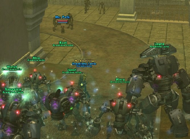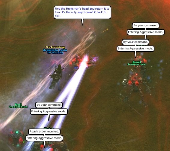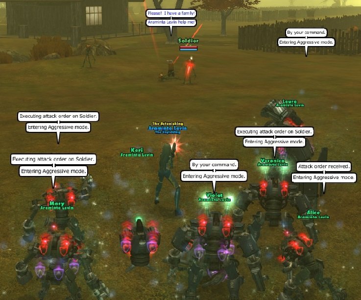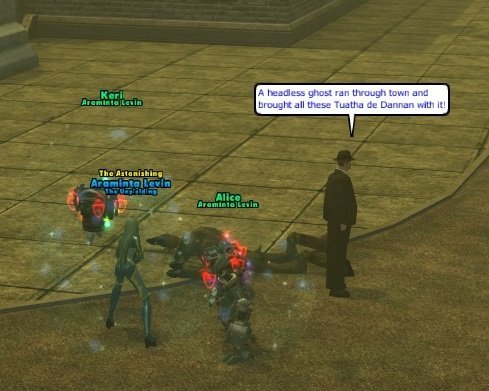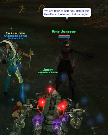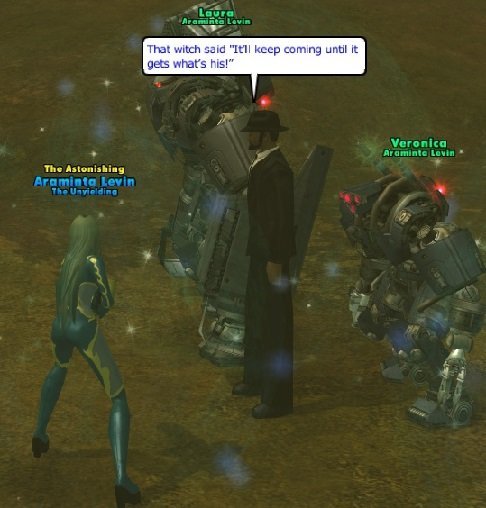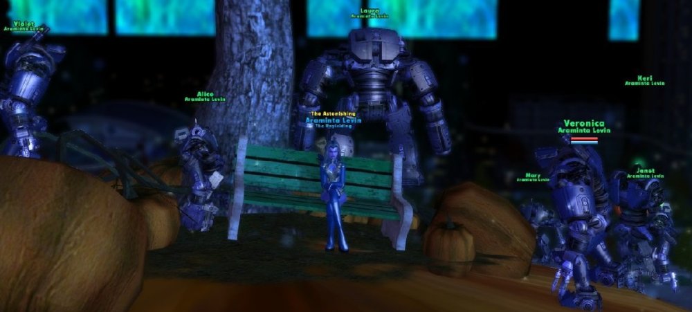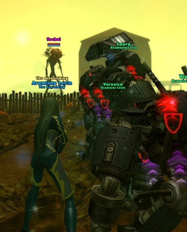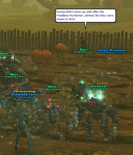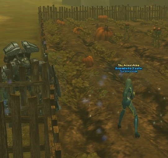 Araminta's Adventures. Hello gang! Araminta here. I generally have a quieter life than Engineria, what with still reading through a lot of material salvaged from Praetoria. When that that is converted to AE data by Neil over in Steel Canyon then I'm going to have a look at it properly. Having just come back though from checking out a zombie invasion I check my messages to find one from the mayor of Salamanca over in Croatoa, Gordon Bower. I've only been out to Croatoa once or twice so far. Seems lovely but I tend not to drag the girls around open countryside because I then spend hours scraping dirt out of the metal. But I won't refuse a call for help. --------------------------------------------------------------------------------------------------------------------------------------------------------------------------------- The Headless Huntsman of Salamanca by @Jiro Ito Mission 1: A Call From the Mayor's Office. So I get the train out to Salamanca and head over to the town hall. No sign of Gordon Bower though. I meet Councilman Larry Vaughn instead. He tells me that my services aren't needed and I can just turn around and go home and take my robots with me. Suspicious much? I don't like how this is going. He insists though and I leave. I decide to have a look around Salamanca myself while I'm here. What's Vaughn gonna do, arrest me? He's a Councilman, not the police. He's not even the mayor. Let's have a wander around. And I'm glad I did! Down one street I can see a Mr. Polk held captive by the Tuatha! Those creatures look as big as some of the Council Soldiers! Or the Council Soldiers are on some steroid to make them as big as the Tuatha! Both are much bigger than me is what I am trying to say! Well, I'm going to rescue him. C'mon ladies! Everyone lock and load! Ok, these Tuatha are tough. I was thrown across the street at one point! But the girls took them down all the same. Now, Mr. Polk, are you ok? A headless ghost you say? That's a new one for me. Just the one headless ghost? No accompanying ghostless head? No. Ok. Ok, I've read a lot of the news reports that have come out of Croatoa over the years and I really shouldn't be surprised that a headless ghost would appear here of all places. Nor should anyone else really. But there are other citizens in trouble so me and the girls go looking for them. If this is what Larry Vaughn calls normal then I don't want to live here. Coming around a corner in Salamanca we run into a similar situation as Mr. Polk, except this time it's a Mr. Posner. Ok, girls, you know what to do now. Let's get to rescuing! We free him and he claims that the headless ghost drew all the other creatures here. Ah. Well, I don't know what to do about that. Yet! All I can do right now is save the rest of the citizens currently being terrorized by the Tuatha. Oh hello, who are you? Scruffy. And you are? Oh! Sorry. I was just about to offer you a treat. I keep a small supply in one of Laura's utility boxes. Oh you still want one? Ok. So Scruffy here is a shapeshifted member of the Midnight Squad. They heard the commotion and came outside to help. Nice to meet you, Scruffy. What say you and me work together here? There we go, Scruffy! Mrs. Kintner is our last rescuee! And Scruffy, I know you're a professional and all but don't run in front of the girls when they're firing. Hang on Mrs. Kintner, we're coming! So yeah. Mrs. Kintner reaffirms the whole deal about a headless ghost. The streets seem clear. For now. Scruffy vanishes off in the direction of the university. I've been meaning to have a look at their library actually. They have lots of books that haven't been digitized yet and some that they claim can't be digitized. I head back into the town hall and Larry Vaughn meets me at the door and once again tries to get rid of me! Says there no such creature as a headless ghost here and even if there is, well I must have brought it with me! What? In some sort of vacuum thermos? On the train? You're either hiding something or you're an idiot. Or...I finish the thought outside. Or you're really scared and there's more to this than a headless ghost. Hmm. C'mon girls, let's go sit at the train station and have a think. [Mission 1 = Simple mission but very well executed. I really liked the concept of the bait and switch with the contact and having a contact that really doesn't want you there.] Mission 2: Children of the Pumpkin Patch. So after some thinking I head back to the town hall and Vaughn is almost surprised I'm still in Salamanca. He has some words for me on that! Then he gets frustrated and admits that yes there's rumors of some sort of creature in town. Something without a head. I let the next comment ride because the people here need my help more than Vaughn needs Laura to hang him out the top window by his ankles. And then he tells me again to get lost. I tell him I want to speak to the mayor but apparently Mayor Bower is with the Agricultural Committee and is busy. Then there's some more hate from Vaughn concerning "city folks". Whatever. Girls, we're going looking for the mayor. Very countryside here. All seems passably quiet until I see some Fir Bolg over in the pumpkin patch. Field? How big is a patch supposed to be anyway? They look like they crawled up out around their bigger siblings, and that's a scary thought! Like the actual pumpkins are sleeping bigger Fir Bolg! And it turns out that maybe it's exactly as scary as it sounds because Keri makes some beepity noises and I turn around in the pumpkin patch to see....yeah, I am NOT going over there. Engineria might be mad enough to tackle Eochai by herself but I sure as hell ain't gonna! Time to do some circling. Looks like the Agricultural Commission may be on temporary lunch break right now if that monster is stalking the farmlands hereabouts! But I've got some company again! And this time I dig out the treats! Hey Scruffy, over here! Let's go find Mayor Bower! So Scruffy joins us and fits right in with t