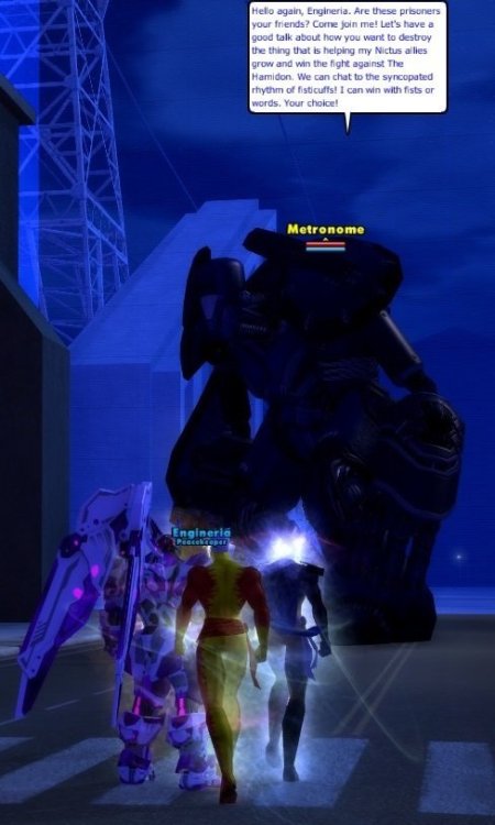 Arc 26 from our first author on "TerroirNoir's Cable Channel of AE" Reviews is @Ankylosaur's All That Glows 2: Nictus Exodus. Mission 1: A Zag in the Zig. So after finally wrapping up stuff at Paragon U I meet up with Hornet for a coffee. He seems fine mostly. A bit tired. The Wyverning is a 23 hour a day job it seems to me. And that's when I get a phone call from Buddy Bolton. I cover the speaker and whisper to Hornet who it is. He nods and proceeds to put what appears to be eight sugars in his coffee! How does the man have any teeth left?! It seems Bolton got a promotion after our last adventure. He's a captain in the PPD now. Excellent. Heading up a tiny unit investigating more Nictus activity across the city. He's following up the sole real lead they have though, Stardust, and wants to know if I want a front seat at the interrogation at the Zig with him and Orthas. Sure. I'll just have to speak to a Zayas once I get there. I gesture at Hornet to get the bill but he waves me away, covers the tab and tip and says something about his boss being loaded. Do I want a lift over to the Zig? Why not. So we wander over to Hornet's parked Arachnos flyer - honestly, do Arachnos not know you have this? The Meteors have one too - and we take off. As we approach the radio squawks something about a car ramming the Zig's walls, Council flooding in, prisoners flooding out, and that's not good. I get Hornet to drop me down and while he guards the flyer against escapees I head into the chaos. Maestro is free? That's not what I wanted to hear at all. Not sure exactly what I wanted to hear but that is definitely not it. That's Ascendant Archon De May. And he gets his comeuppance from me, and some swiftly arriving back up from the PPD's psychic force. You stay down, you maniac. Now, I wonder is Maestro here or actually out in the city. Time to find out. Well, I should find Bolton and Orthas and Zayas first I suppose. Up ahead as we get closer to the sewer entrance, we run into Dark Equinox Archon Breque. "Dark Equinox"? Honestly, the Council and their fellow fascist Cosplayers, the 5th Column, are so full of overblown titles that I'm amazed they can get their heads through doorways. But.. Breque takes a knee to Engineria and her PPD buddies all the same. Bye bye, Breque. You came to the Zig, you get to stay for a while, hopefully a long while. He WAS ranting about Nosferatu being free though. So Maestro and Nosferatu. Well rats. Who's next then? Ah! One of Breque's gang transformed into a Darkwolf! Down! Does anyone have a rolled up newspaper? Or some spray? No? Rad blast it is then! With the Darkwolf dealt with I scoot ahead and into the main sewer entry of the Zig, up a rank tunnel and through a hole in the floor. It's smoky and grim in here and I run into a Mindstorm called Kaya. Nope, no idea who she is. (I may have to peruse my case notes later). Where I go she watches? That's sweet. Have some radiation powered blasts! I don't have time for your fangirling. Down she goes. Up around the corner I find Bolton and Zayas and free them before going looking for Orthas. And it figures that he would be held by Void Hunters! Yeah, I'm here and I'm mad. You've captured my friends and that does not put you in my good books. No siree. You two take a long nap now, y'hear. You ok in there, Orthas? Good. Found him, guys. Now, let's get out of Dodge and gather the troops, gird our loins and circle the wagons...I'm running out of clichés here so one of you help me out! I'll be veering into "Fish swim south for the winter", and if you know that reference then kudos! Wait, Raze? Do I know you? You seem to know me. Oh hell, I'm still in the wrong time era after that Cimerora thing, am I? Or are they referring to one of my doppelgangers? Well, whatever it is we're not on the same side now. Amazing how all this "forging a new way" involves hurting the innocent, yeah? Ends justify the means, do they? Not on my watch, bucko! Not on my watch! Raze goes down. Kinda had to against 4 of us to be honest. Now to deal with someone mentioned earlier by the Void Hunters, a Suarez. Haven't seen him or her yet, so I assume they're arriving to pick up their prisoners. Let's give them a big surprise! There he is! Welp, he's noticed us! Pile on, gang! Don't let that guy get away! Orthas! QB! You're up! Oh, he's tough! But again there's 4 of us and he takes a beating! I'm trailing smoke out of my armor and my HP is heading into the red. Bolton is looking shaky too. Orthas and Zayas just jeep hitting Suarez though. And we all live to tell the tale! (a) go us! (b) whew! The Dark Comet is coming, is it? Yeah, I've been hearing that for a while now. And we're gonna be there, my friend. And then it's over. The PPD have regained control of the Zig. The rest of my little gang stagger out and sit down heavily. I look across at Bolton and wait for him to speak. So Maestro and Nosferatu are definitely gone. And so has Stardust. That's when Zayas chips in with an interesting fact (that might be illegal but this Vig is saying nothing!) It seems that the Zig is in the habit of slipping short life span tracking devices into the inmates' food, and that could help track Stardust at least. [Mission 1 = As usual the Zig yard map is a great map for some excellent encounters and once again @Ankylosaur is doing some deep world building here. Looking forward to see how this plays out.] Mission 2: Freakout. Bolton fills me in on details here. The new Council are building up their forces. Still got the UPA and the Awakened are on board too it seems. Orthas is more interested in the Void Harbinger. Being Kheldian he would be. And at that point Zayas informs us that they found Stardust! He's in the Freaktown part of Crey's Folly. Well of course he is. Couldn't just book himself a room in a motel quietly. Looks like I'm off to a run down warehouse in Crey's Folly then. In I go and...hold up! What in the blue hell are you? A Shadow Freak? That does not bode well. (No