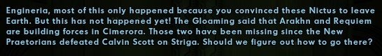 Ah. No it wasn't 100% clear to me. That is probably on me though. I read it more like Engineria and her team had entered the building and then been staggering through the missions with her memory fogged to hell, not sure how she got there and hearing the voice through her headset. It's why I never mentioned the contact at all. I think it worked though! And I had to reread my post to find the Yeats thing! I see it now. Sadly that was not intentional 😞 -