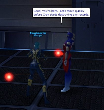 Araminta's Adventures. Hello gang! Araminta here. I generally have a quieter life than Engineria, spending time tinkering with the Bots and attempting to power them better is how I spend many an evening. That and reading through a lot of material salvaged from the ruins of Praetoria. Some of which can be converted to AE for a virtual experience! Amazing how that works. But right now it's Halloween and a call just went out for aid. Engineria is off helping out Professor Dafriend in Paragon U on something. No idea what. I'll find out later no doubt. So I got the girls all polished up and decided to see what the trouble in Paragon was. ---------------------------------------------------------------------------------------------------------------------------------------------------------------------------------------- Revenge of the Undying by @SirArthurIV (@Blazing Pyre on the AE console) Mission 1: Zombie Invasion. Azuria sends out a Code Red for all Paragon heroes to attend! Atlas Park is being overrun by zombies! City Hall was surrounded and broken into. So far authorities are unable to discern what they wanted in there. And a part of me is thinking do they want anything? Or is there some controlling Master Master Mind in charge of all of these undead people and they want something in there? I'd best investigate! I don't say it often enough (Shut up, Engineria) but I LOVE my girls. They can really lay waste to a horde of zombies when you need them to! Several more rounds of that sort of thing and me and the girls have made our way to City Hall and forced our way inside. And wouldn't you know it, they DO seem like they have a mission that they're on. They're heading down the stairs to the hero offices of D.A.T.A., G.I.F.T., E.L.I.T.E., S.E.R.A.P.H. and M.A.G.I. And there's a lot of valuable and frankly dangerous stuff down there that you wouldn't want a zombie (or its Master) getting their hands on. So we do the only thing we can do. Lock and load and fire until...well, until nothing is moving. Seems to work. I do have to jolt the girls with Electrical healing every now and then to keep them going but that is to be expected in a mass firefight like that. Deadwalker? Well, the dead bit is definitely correct. It ain't walking anywhere soon though! I follow down the stairwell an lo and behold the throng of undead is gathered around the G.IF.T. doorway. And that room is one of the entrances to the Hero 1 vault! If there's anything in there a zombie should not have...well, I don't have high enough clearance to know what's actually in there but neither do these guys, so I'm going to stop them! Clearing these guys took a while. Had to retreat a few times and regroup! But the bots know their job and do it well so finally I made my way down to the vault door and stepped through, to be attacked by zombies already in there! Which was not conducive to my peace of mind. I don't know, you would think that Halloween would be a time that the undead stay away or take a little vacation in Croatoa or something. I mean, we half expect to see them! Now we are getting somewhere! The Undying King, huh? My first proper lead and/or clue as to what's behind all this. Uttered by a Lich too. Maybe my idea about a Master Mind isn't that far off the mark after all. The next few minutes get a little bit frantic for me as the Lich targets me personally, but my girls take aim and leave that guy's undead hide perforated. You could, if you were weird enough, make a Lich-skin rug out of him now. Although maybe a small one so as not to have holes in it. I'll take this nugget of information back to Azuria and see if she's ever heard of an Undying King. Azuria is going to look into it, as well as organizing an inventory of anything missing from the vault. [Mission 1= Lots of fun! @SirArthurIV advised setting Team size to times 8 to really fill out the space with a zombie horde and it does make a difference. Light intro mission but very enjoyable.] Mission 2: Seeking Knowledge and Wisdom. Azuria finishes up her inventory checking and comes back to me. Undying King? No information on him yet beyond what I've discovered, that he's a necromancer. But the inventory shows a missing tome, the Liber Factotum Exaltatum. The what? Azuria does some more 'splaining. You want to know about angels? It's in that book. How many of them, their organization, how to summon them and so on. Plus lots of spells on repelling the undead. Weird. Why would a necromancer want that? So this Undying King is looking for copies of this book. There are seven. And Azuria knows the Council have a copy so she wants me to go and get it from Abyss Towers. Right, I'm going I'm going. I seem to have attracted attention from the get go. Then again it is VERY hard to sneak around with seven robots clanking along beside you. So I don't really do the stealth thing. Engineria says it's very handy but, you know, the girls are loud. Ok girls, rack it up and get ready! We're going in hot! And that's that corridor cleared of Council. Moving on I wonder does Engineria have more problems because she doesn't have my kind of firepower? Oh she calls Buddy in for help sometimes but I'm not all cozy with the PPD like that and frankly I don't need to be. No matter. On we go. Somewhere here in Abyss Towers is that book and I'm getting it. I mean what are the Council going to do? Report me to Freedom Corps? We move through the Towers hallway by hallway and the Council are pretty insistent on saying I should not be here. I could argue the point but I'm just going to shoot them until they go away. Finally I rock up at a door, still no sign of the book, and ...does that person in the middle of those Council guys have wings? I think they do! So someone here is already using the book! Laura! Door! And the door goes down and we're in! The Council charge us and we get pushed back into the hallway. They really do not want me getting near that winged person! This may take a few minutes to dea