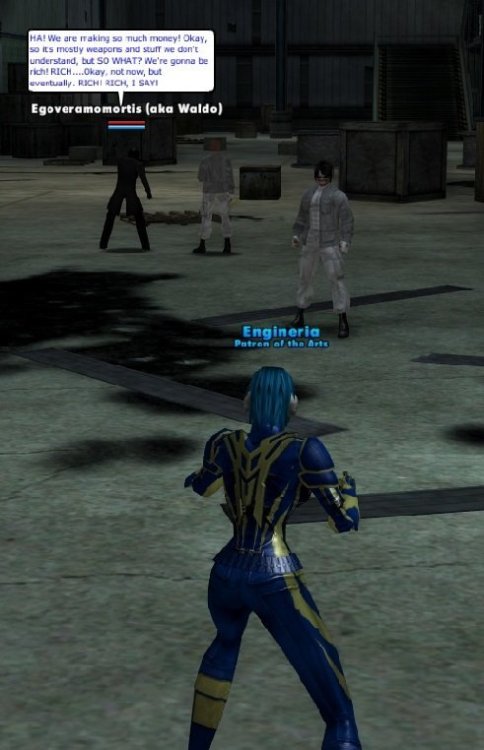 16. Araminta's Adventures. Hey. Not everything is about my buddy Engineria. Some things are about me and my bots. There's Laura, she's the big one; Mary, Janet and Alice, not so big but still tough girls; then there's Violet and Veronica, all protectory, and last but not least, Keri, my floaty friend. Engineria and I used to share an apartment (we still share an SG base) but there's only so much room when one of you is a Master Mind, so I moved out. Nice place in Atlas, not far from the cinema. Anyway, while Engineria is off being famous (yes, I know she says she's a "mid level supe in a city of bigger supes" but she's pretty well known in some circles), Araminta here (that's me) is more laid back and takes things slower. I've still done a few things though, enough to have some decent contacts, the odd Task Force for Positron and the FP, all that. So, here's a little thing that happened to me recently. ---------------------------------------------------------------------------------------------------------------------------------------------------------------------------------------- To Carve One's Own Destiny by @Zakur (@seravius on the AE console) Mission 1: The New Kids in Town. So I received a message from a hero I didn't know, someone called Storm Warning. And I've been getting more work like that since I stopped sharing an apartment with Engineria. The two things may be connected but I'm not going to bring it up when we bump into each other while restocking the racks in the SG base. How many Boresights does one person actually need though? So, I go and meet Storm Warning. She seems surprised that I actually showed up. And she thinks that I am crazy famous. I mean compared to herself as she says she's not really known around Paragon. So anyway she fills me in on what she thinks is something that could cause big trouble here. It involves a weird sale, an abandoned building in Brickstown and a villain named Hollowfrost. Hollowfrost, huh? It's, if you'll pardon the bad pun, a pretty cool name actually. I get some background on Hollowfrost from Storm Warning, and with one thing and the other we have a location for him. Will I help? Sure. Let me gather the bots from the SG...no, they'll arrive fast, I don't need to go there. Then we can go. And we're in. We being me and the girls. It's quiet in here. For once in my life it seems an abandoned warehouse is actually abandoned. Novel. No sign of this Hollowfrost. Storm Warning hasn't seen him either. Exactly. Mysteries can be solved with some investigation. It's not always shoot first and so on. Let's have a look around. Come on. We examine a computer nearby but it's been wiped. Scrubbed I believe is the term. Although it seems quite recently. Although we have set off a Zenith Hoverbot somehow! It zones in on us from among the racks but the bot girls deal with it in their own special way! Further investigation finds a used portal projector. Hollowfrost has definitely escaped. A spot on the floor nearby has a chemical residue of some sort. That'll have to be analyzed when we get back. So, no sign of this Hollowfrost but maybe we'll have some leads once we put everything together. Araminta and Storm Warning meet up to discuss things. She's slightly embarrassed that things were anti-climatic. It happens. She suggests looking into the robots might give a solid lead perhaps. [Mission 1 = Good set up of the mystery. Contact is characterized well and comes across as more than a "Go here/Do that" cipher, which is always great to see. On to the next mission!] Mission 2: The Center of the Plot. Time to investigate the Council's connection to Hollowfrost. Storm Warning (though she seems to prefer being called Bella), has a contact with (to my mind) seriously good intel. Within a few minutes of calling him we have information that a known Council base was raided and their robots stolen. Well, it seems Hollowfrost has no fear of retribution from an entire fascist organization! That shows he's either supremely arrogant and powerful or supremely arrogant and delusional. Although I have to say, from listening to Engineria recount some of her more outlandish adventures, those are not mutually exclusive. So, our plan is to hit that same place and see what intel they have on the theft, find Hollowfrost's footprints so to speak. Ok, typical Council base. They seem to like this sort of cave structure. I'm surprised they haven't fallen into Oranbega actually. Ok, some enemies ahead. Have to deal with them. The girls take him on and yet he still manages to fire through their protective cordon and hit me! Not good. Fortunately I've some gymnastic ability and spring back into a defensive position by the time he's dropped. He has some access codes on him so that'll be useful. And Storm Warning arrives late. I wonder where she was? Ok, Bella, let's explore further. We run into some resistance along the way but it seems that this Council base isn't at full strength after the Hollowfrost theft. I mean, I don't know if anyone knows what a full strength Council base is like, or their real numbers, but it seem sparse compared to other ones I've seen. We deal with them though! Nearby we find a console and the access codes get us straight in. Excellent. Plenty of sensitive material but there's a noticeable gap in the data around notes for a reverse-enginered serum of some kind. Council Super Soldier? They do like that sort of thing. We find the Archon, a guy called Keller, who confirms Hollowfrost's presence here. Between myself and the girls and Storm Warning we beat him down. He gives up the ghost and informs us that the serum was somehow connected to Marauder! Marauder is...let me get this right. Marauder is a member of the New Praetorians, but he used to be a Praetor on the enemy side during the Praetorian War. I've heard he's a doppelganger of Back Alley Brawler. LOL, and you know, I've NEVER seen them together! Anyway, that's a lead. Time to regroup and think. Bella/St