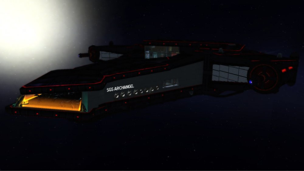 Well, its still a WIP, but I suppose its decent enough to go public... Designation: DDGN-2015 Name: SGS Archangel Mission: Orbital and inner solar system patrol as early warning, deterrent, and attack intercept from extra-terrestrial threats. Weapon release authority granted. History: After the Rikti Invasion, the United Nations authorized private contracting Super Groups to intervene to provide and maintain planetary security. The SGS Archangel was contracted for that purpose. Responsible Authority: Armored Saints Access Code: SAINTS-15367 Surveillance Imagery: The Nexus: R/D with view of the Vault: R/D (Crafting and salvage) Armory and Airlock Security (AIrlock to the left-You will need to be able to fly to go outside): Reactor Room: Port Missile Battery Control and Guard: Mess overlooking the flight Deck: The Bridge: