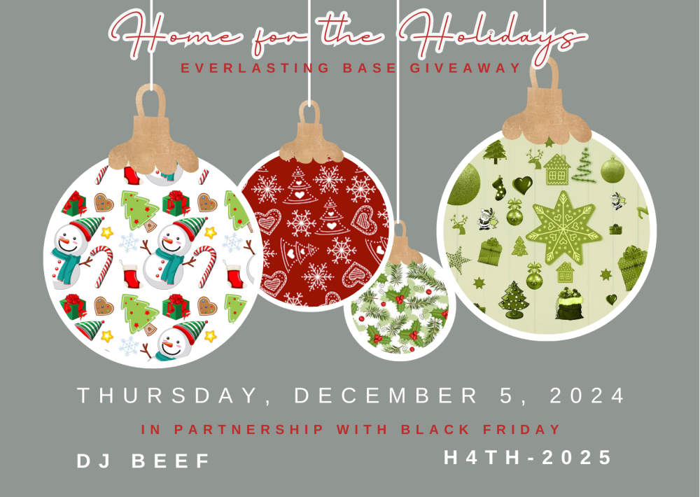 FINALLY, the *Home for the Holidays* Base Giveaway event is **tonight** - Thursday, December 5 from 8:00pm-12:00am ET. Join Faverty Events and Black Friday at a brand new venue located high in the hinterland forests. Make sure you browse the artisan holiday market for last minute gifts for friends and family! There are shops available with IC roleplayers ready to answer all your questions and suggest unique finds! Santa will be giving away 37 RP-style 1-bedroom homes to people on his "nice list" starting at 8:45pm all while listening to the music brought to us tonight by **DJ BEEF**. Basecode: H4TH-2520 Black Friday Discord: https://discord.gg/HnuDt28ege Faverty Events Discord: https://discord.gg/29yReugT Queup: http://tinyurl.com/BlackFriday-Music Visscale recommendation: 2+ (/vis_scale 2)
